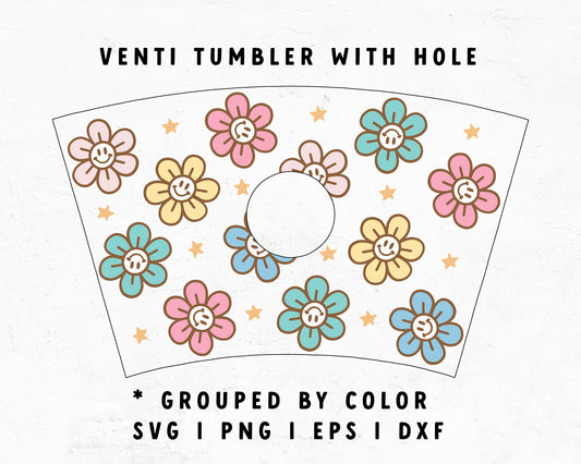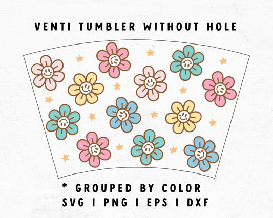 Venti Cup No Hole Smiley Face Flower Cup Wrap
