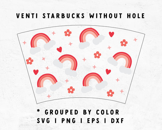 Venti Cup No Hole Wrap Pink Heart Rainbow SVG