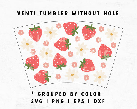 No Logo Venti Cup Wrap SVG | Cute Strawberry with Flowers