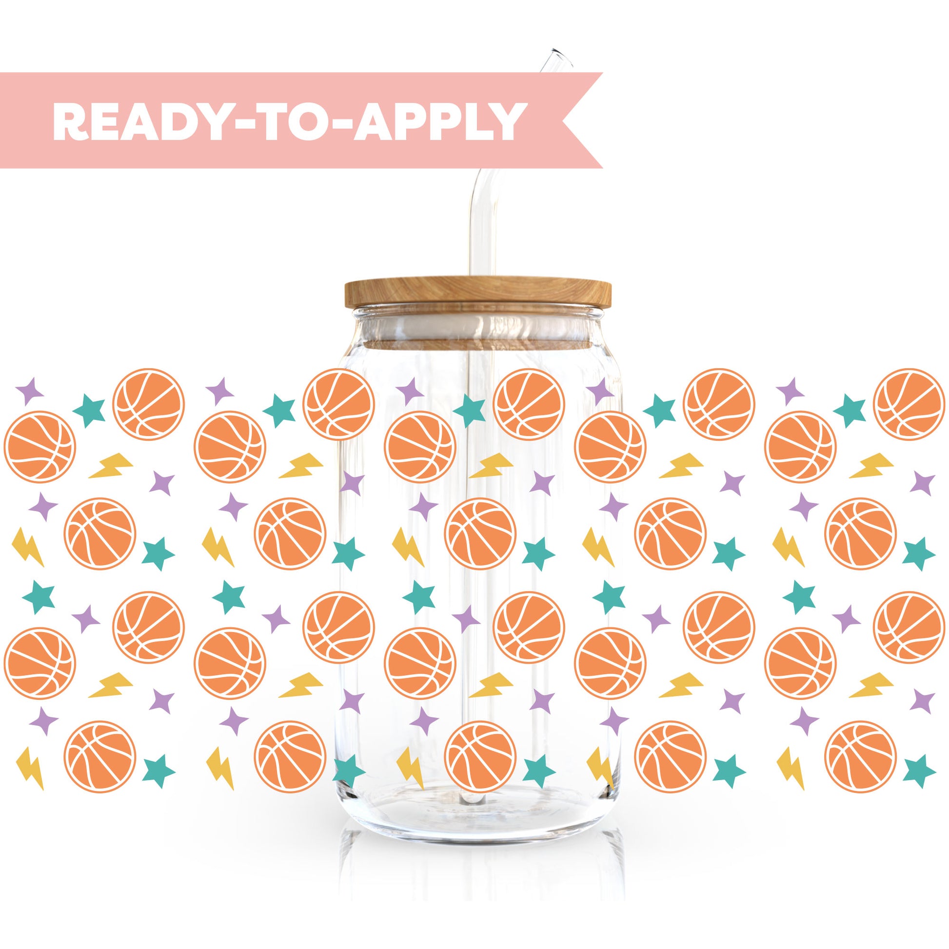 Dribble into style with our 16oz Cup UV DTF Decal featuring a cool basketball design—ideal for giving your 16oz glass cups a sporty and personalized slam dunk!" 🏀🥤✨