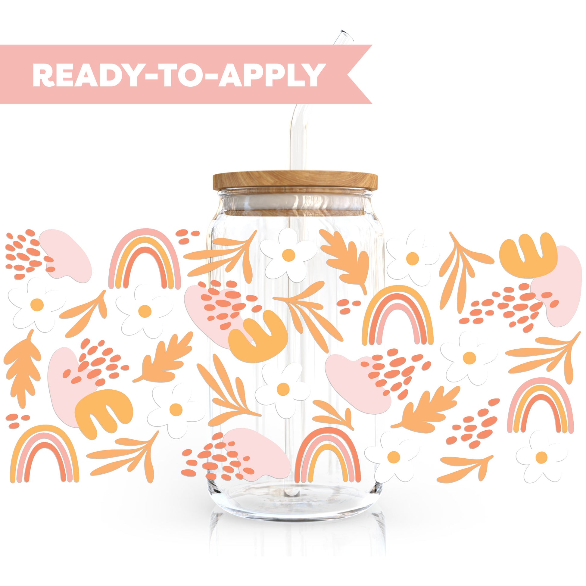 Embrace vibrant Boho vibes with our 16oz Cup UV DTF Decal, featuring a chic Flower Rainbow design—ideal for adding a trendy and personalized touch to your 16oz glass cups!" 🌺🌈🥤✨