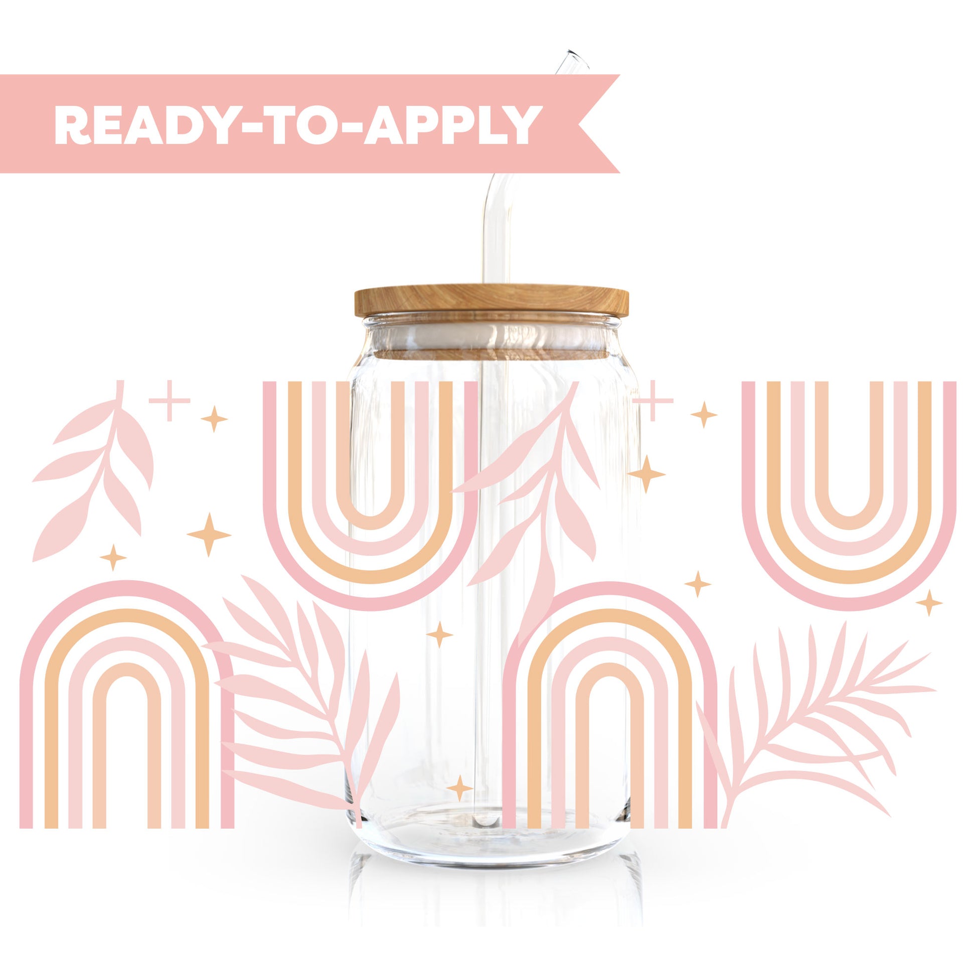 Embrace boho vibes with our 16oz Cup UV DTF Decal featuring a chic Boho Pink Rainbow design—ideal for adding a trendy and personalized touch to your 16oz glass cups!" 🌈🥤✨