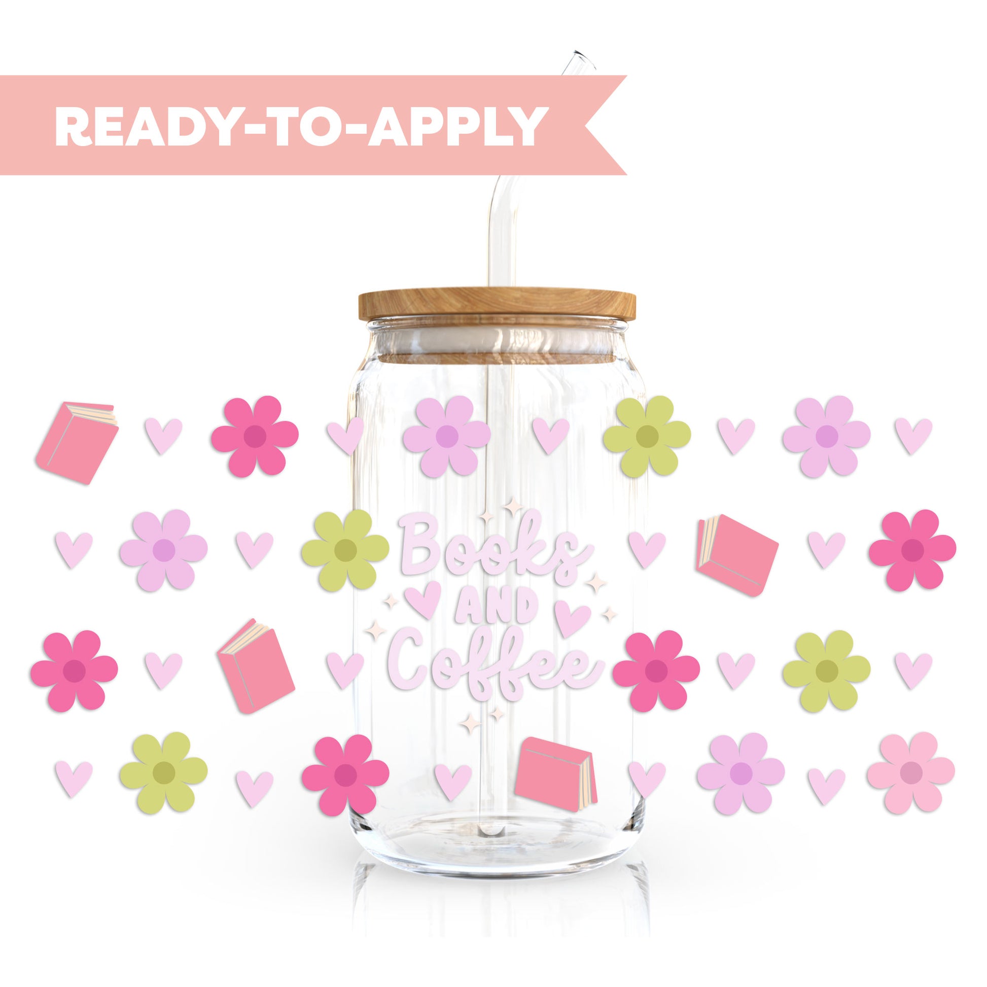 Indulge in the perfect pairing of books and coffee with our Books and Coffee UV DTF cup wrap for 16oz glass cans – because every sip should accompany a good read! 📚☕️🥤