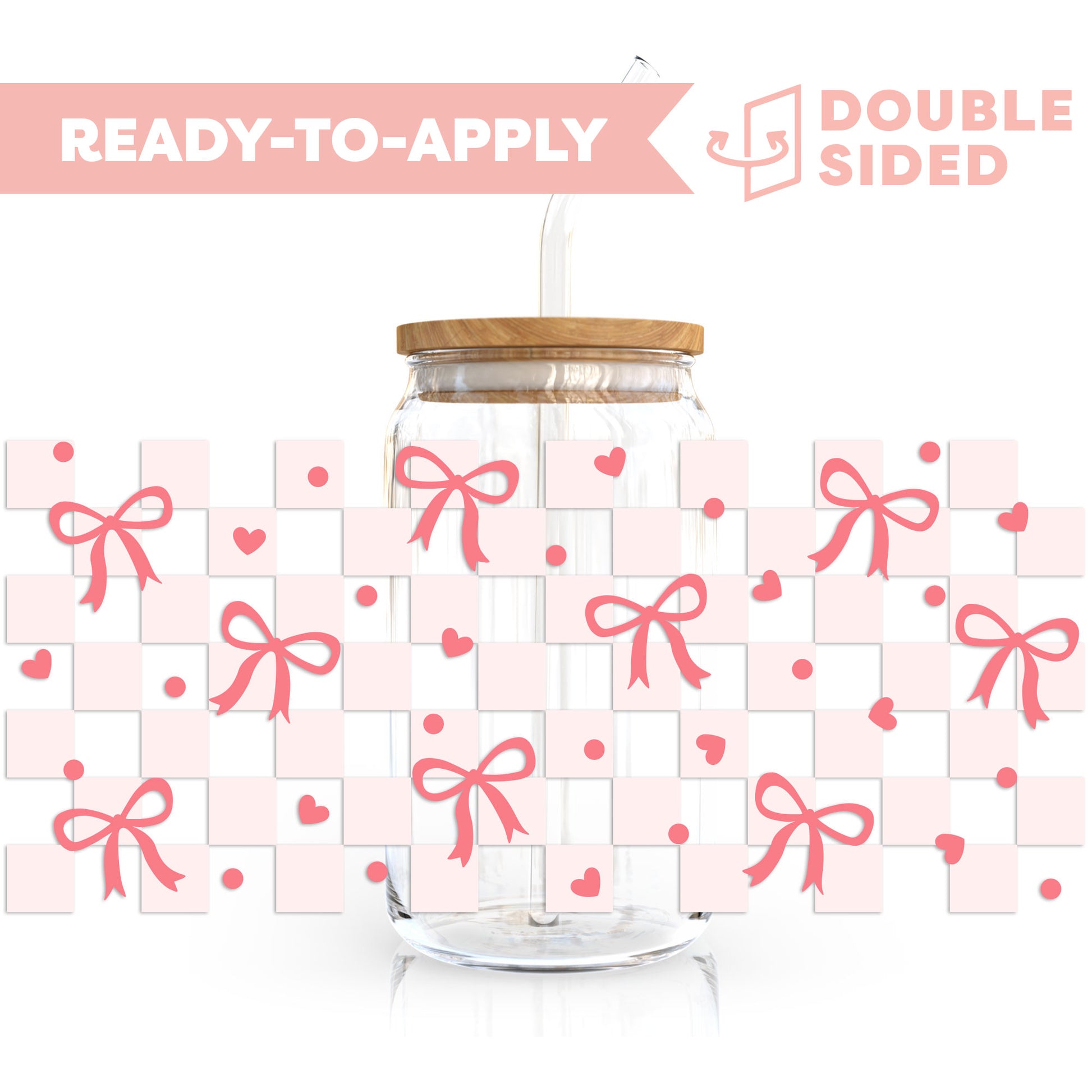 [ Double Sided ] 16oz Cup UV DTF Decal | Checkered Coquette Bow