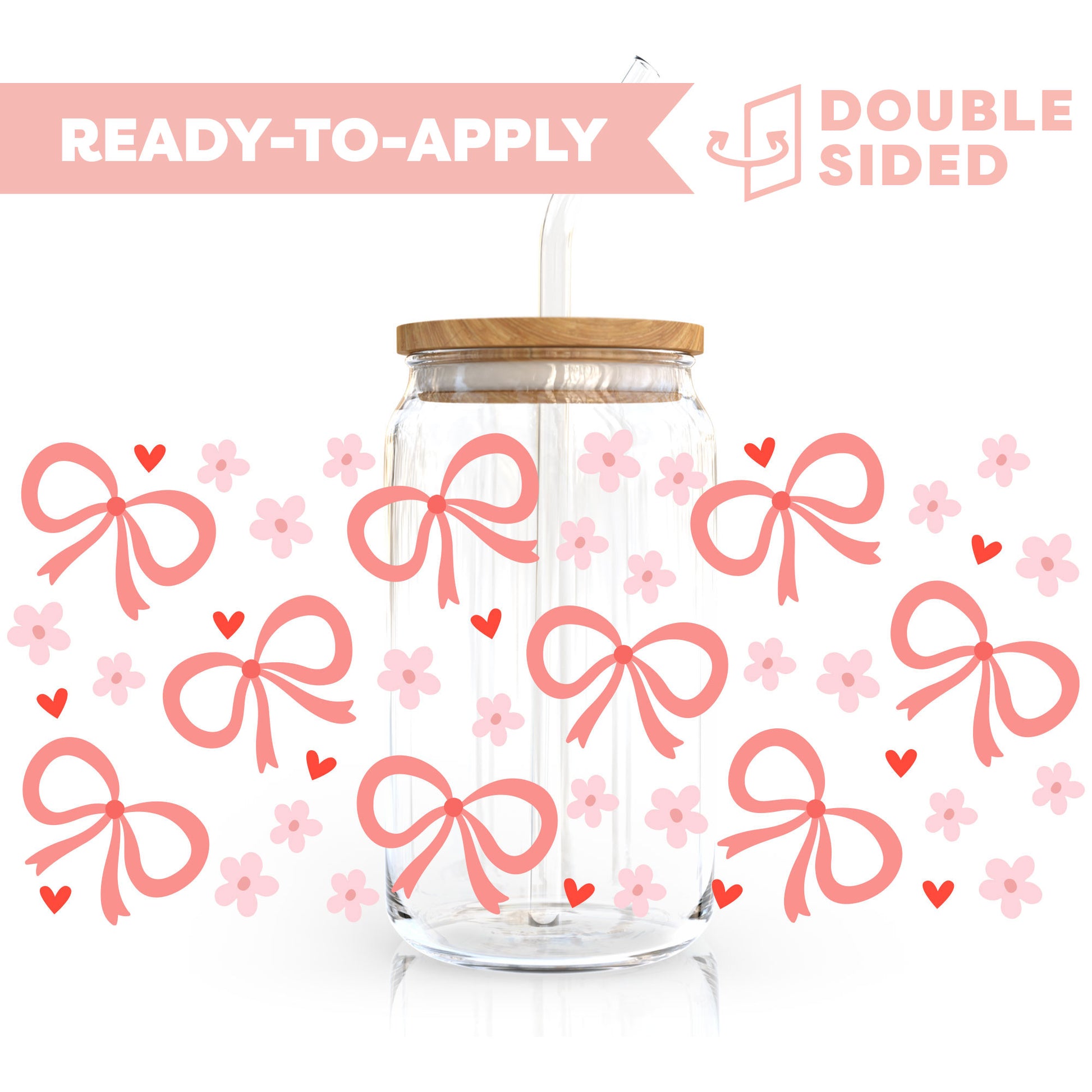 [ Double Sided ] 16oz Cup UV DTF Decal | Floral Bow
