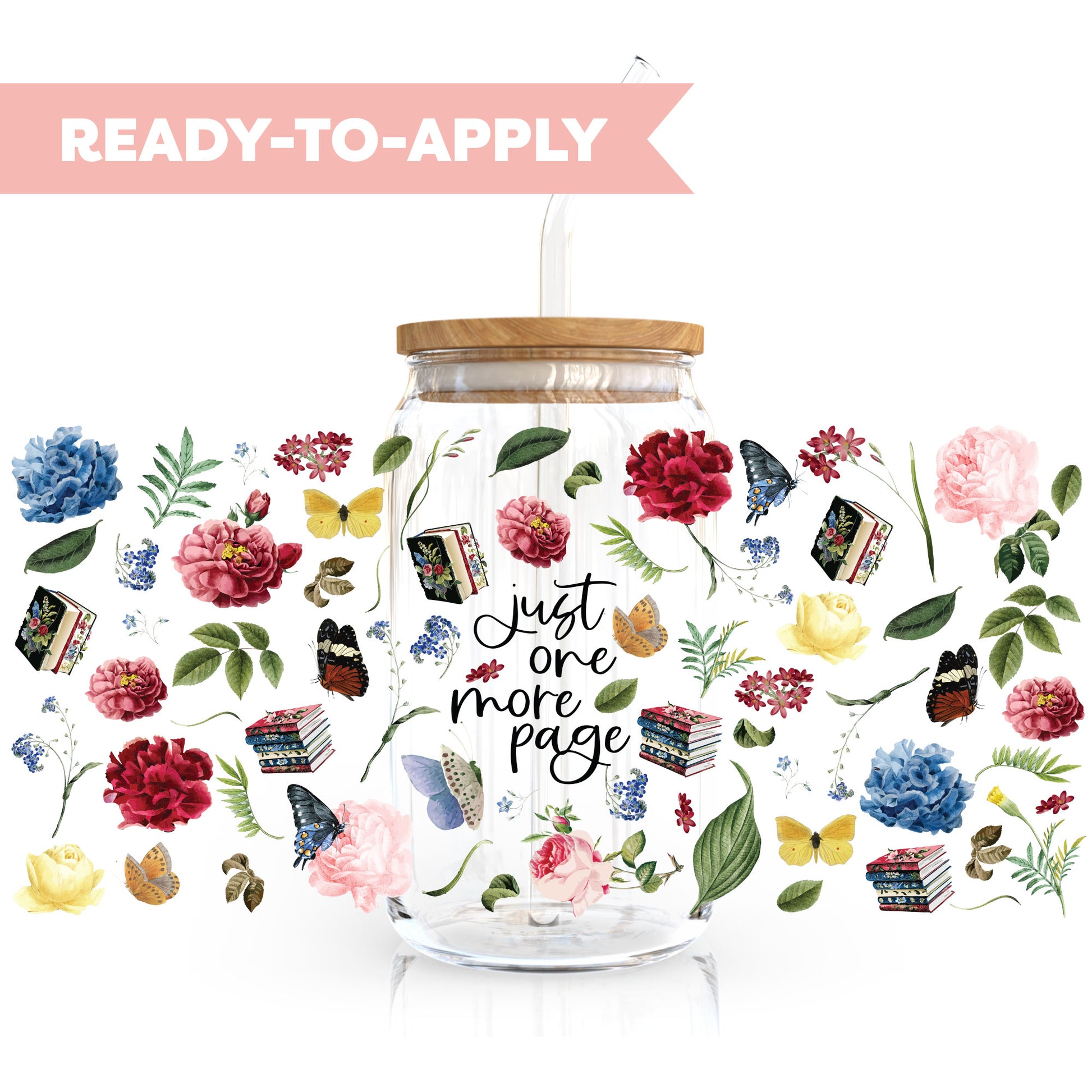 Sip in style with our Vintage Flower Design and 'One More Page' Quote UV DTF Cup Wrap for 16oz! Elevate your sipping experience with this charming and literary-inspired cup accessory. 🌸📖