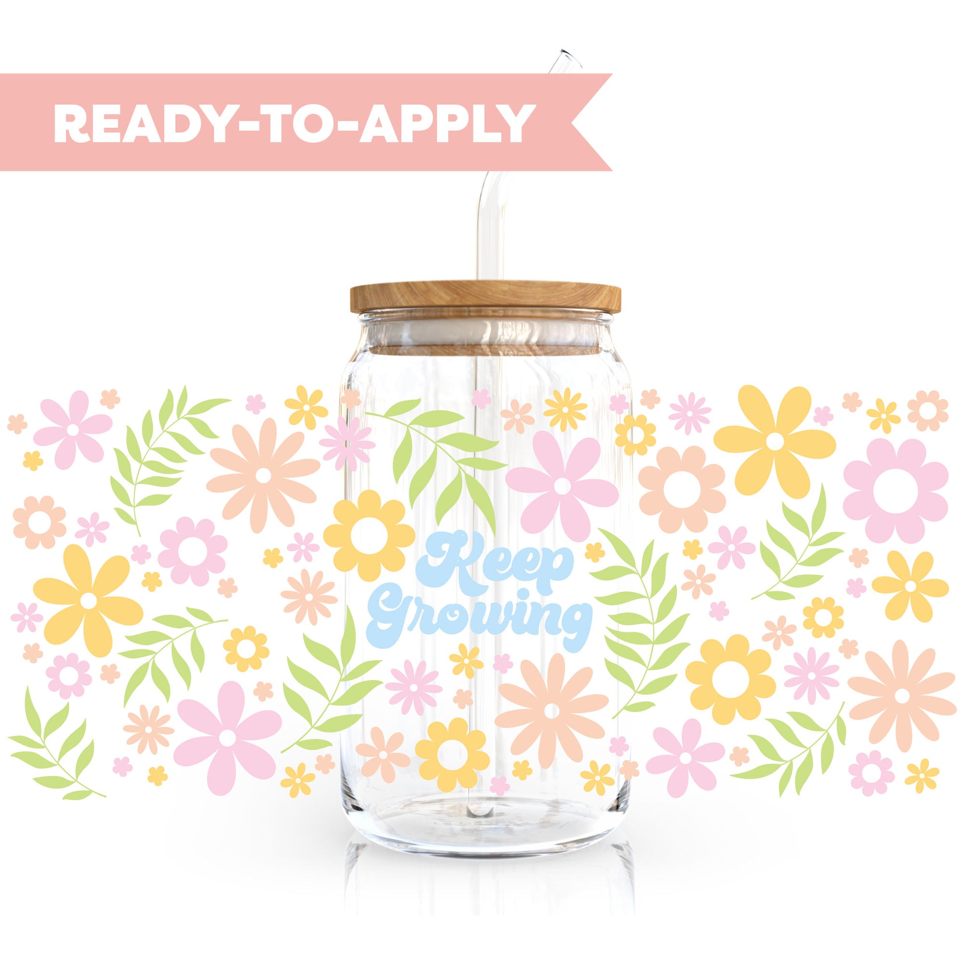 Cultivate positivity in every sip with our 16oz Cup UV DTF Decal featuring a "Keep Growing" floral design—perfect for adding a touch of inspiration to your 16oz glass cups!" 🌸🌿🥤✨