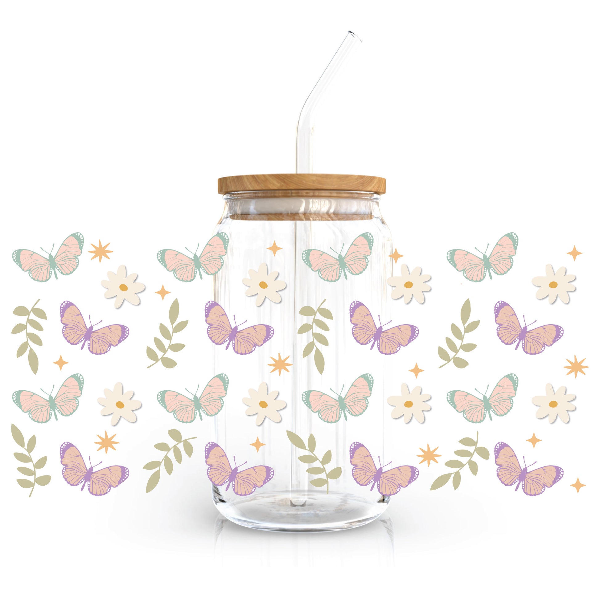 Sip in style with our Pastel Butterfly UV DTF decal for 16oz glass cups – a fluttering touch of elegance with every drink! 🦋🥤