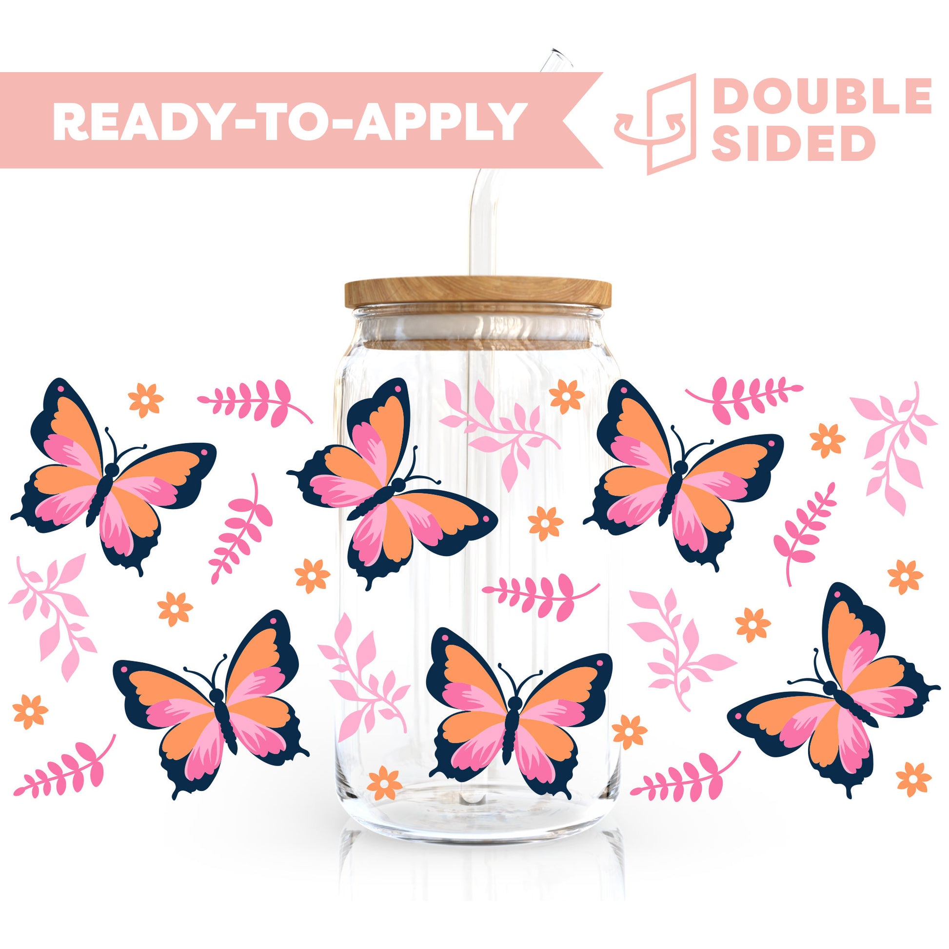 Flutter into whimsy with our Pink Butterfly UV DTF cup wrap for 16oz glass cans – because every sip should take flight with beauty and joy! 🦋🌸🥤