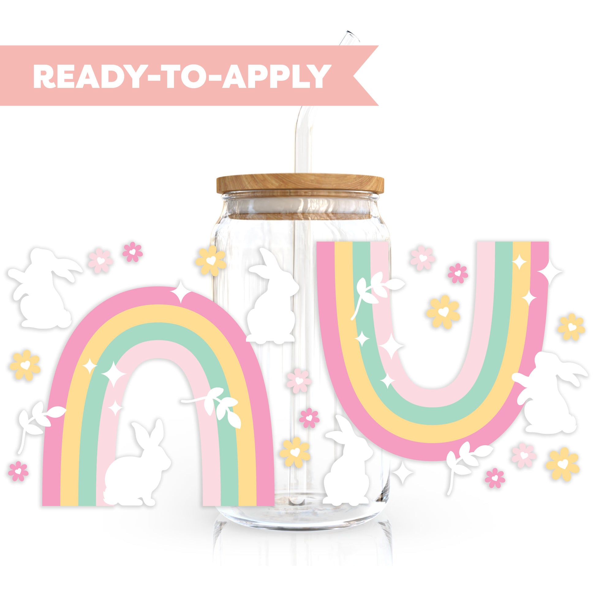 [ Double Sided ] 16oz Cup UV DTF Decal | Rainbow Bunny
