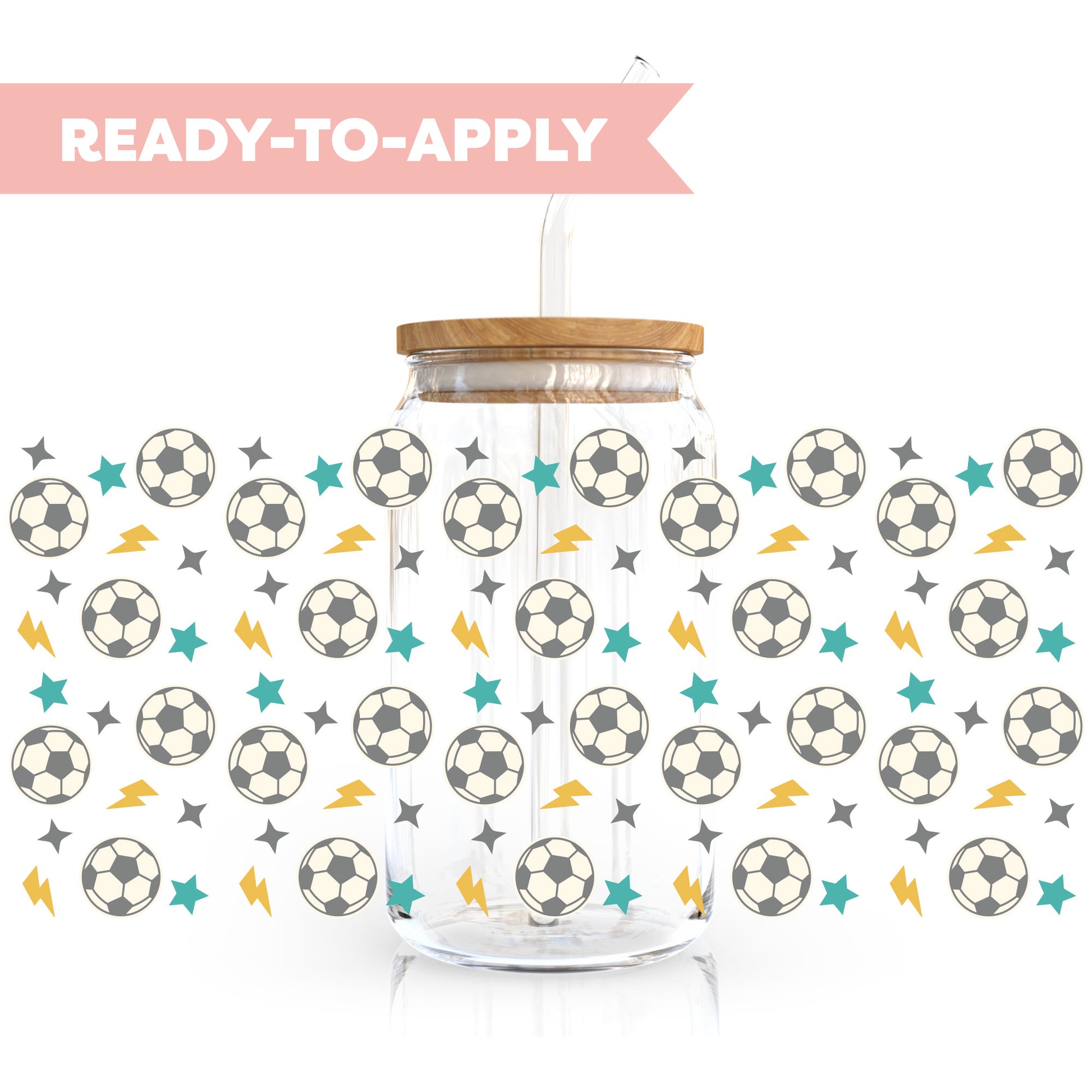 Kick your glassware up a notch with our 16oz Cup UV DTF Decal showcasing a dynamic soccer design—perfect for infusing a sporty and personalized vibe into your 16oz cups!" ⚽🥤✨