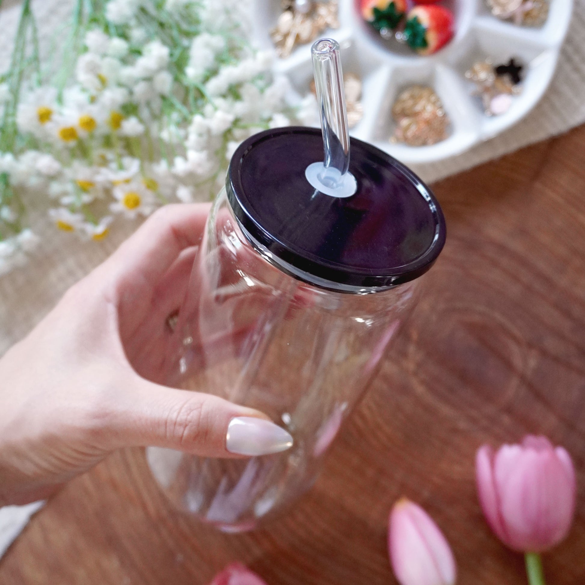 16oz Glass Can | Clear Cup + Black Plastic Lid