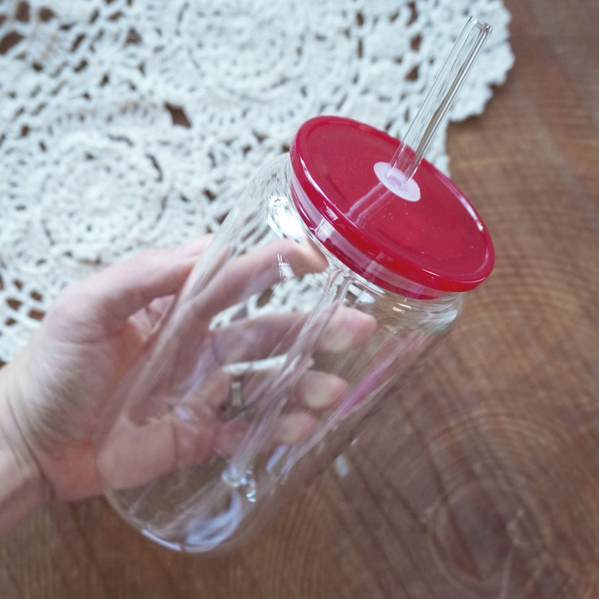 16oz Glass Can | Clear Cup + Burgundy Plastic Lid