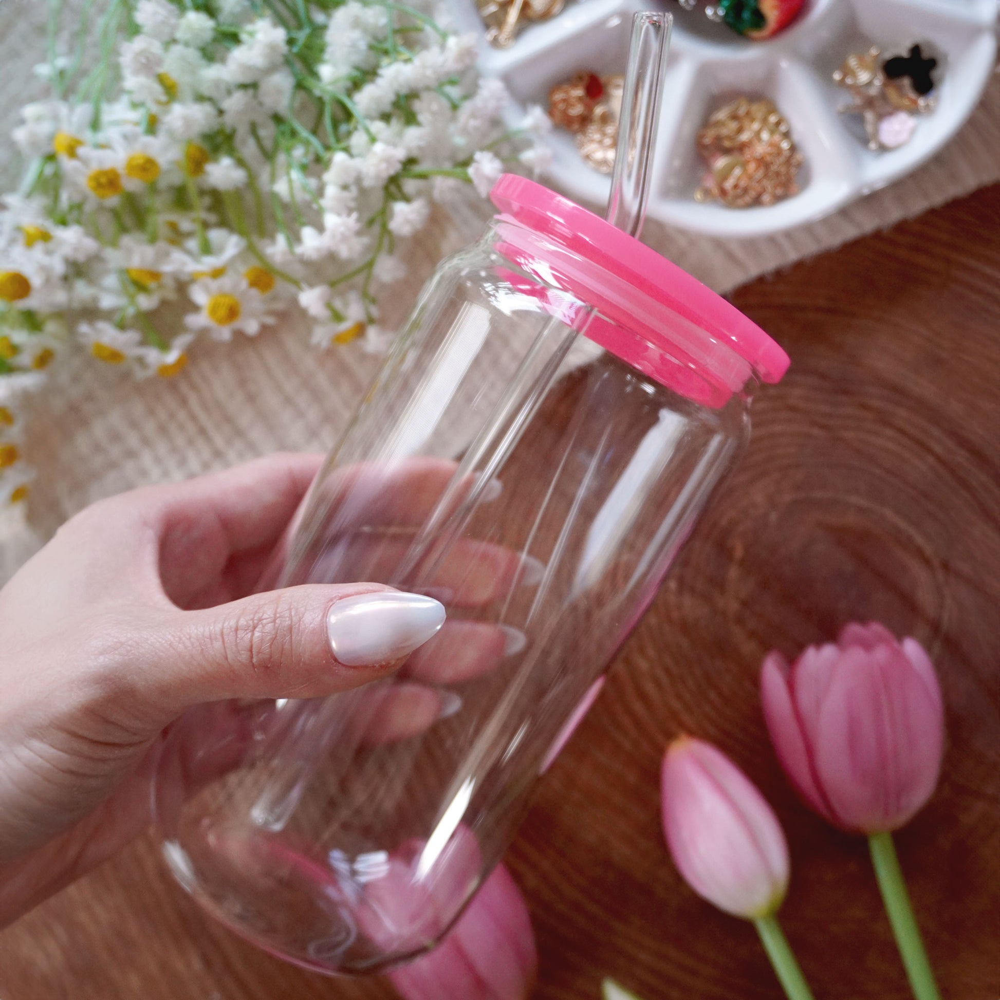 16oz Glass Can | Clear Cup + Hot Pink Plastic Lid