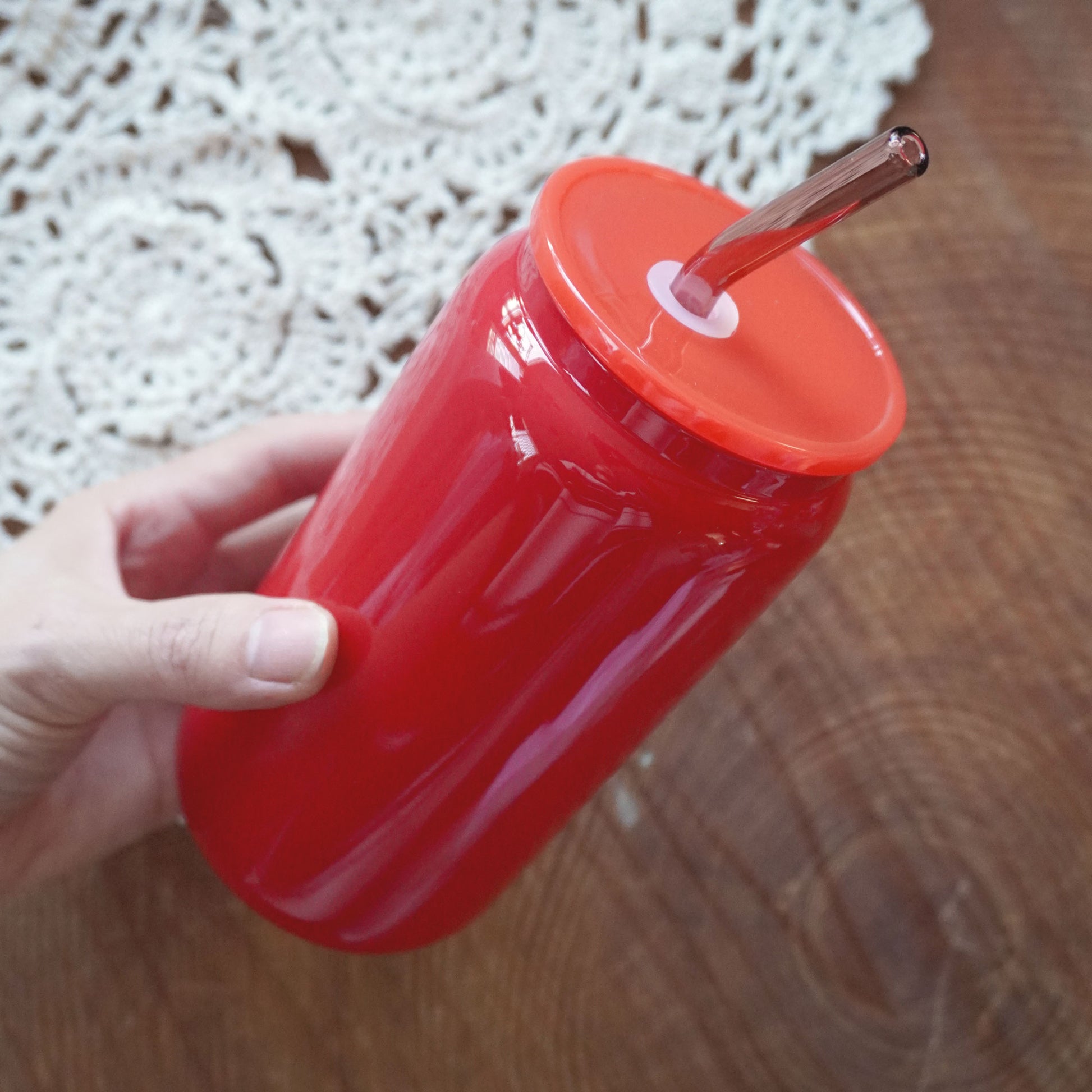 16oz Glass Can with Plastic Lid and Glass Straw | Solid Candy Apple