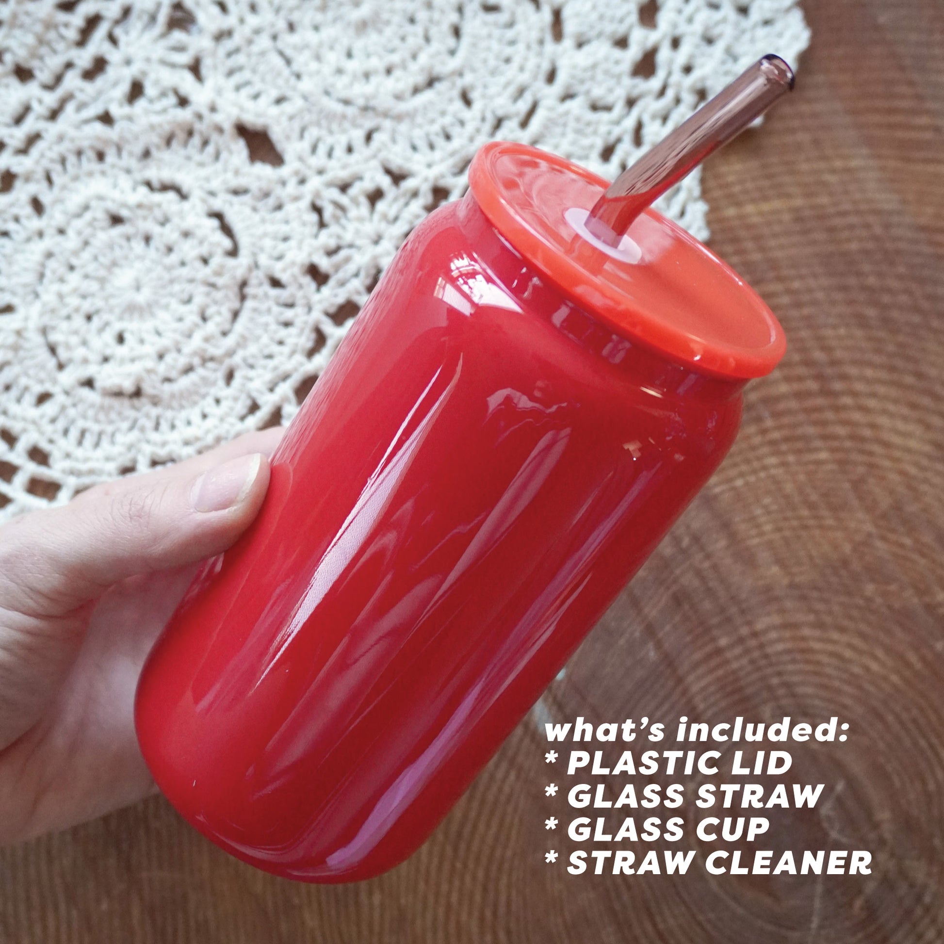 Accessories: Red Glass Straw & Red Plastic Lid & Straw Cleaner
