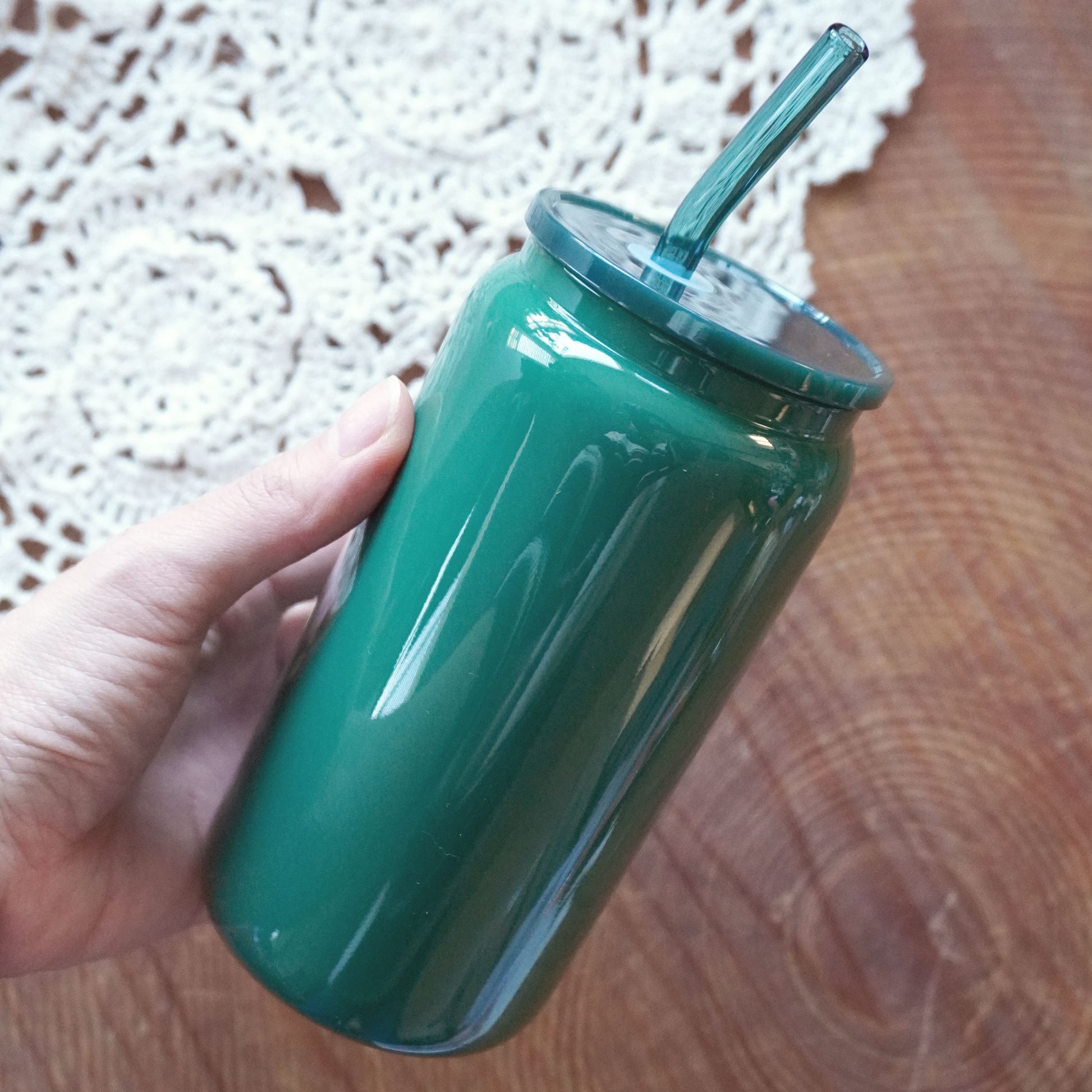 16oz Glass Can with Plastic Lid and Glass Straw | Solid Dark Forest