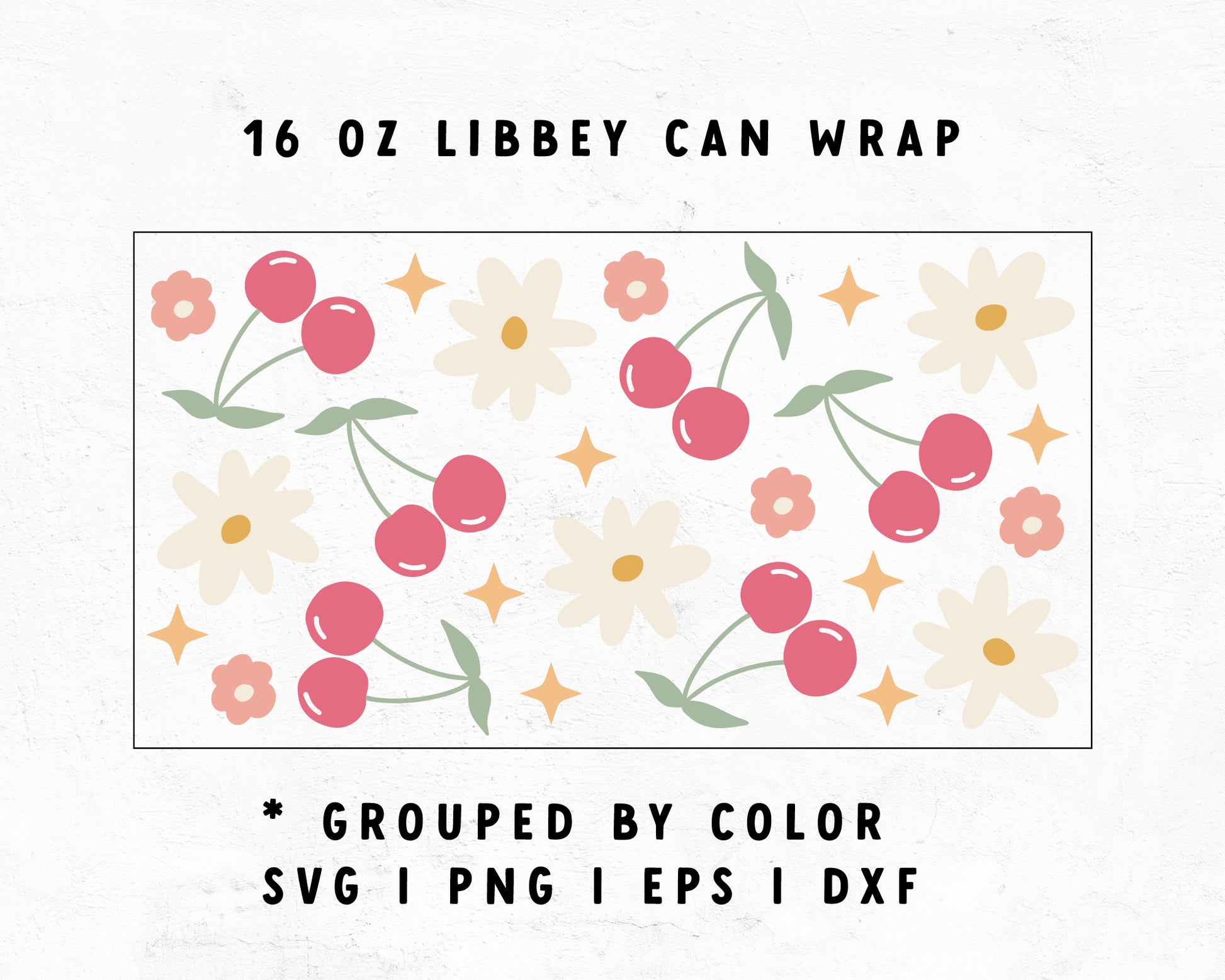 [ SVG Digital File] 16oz Libbey Can Cup Wrap | Cute Cherry with Flowers