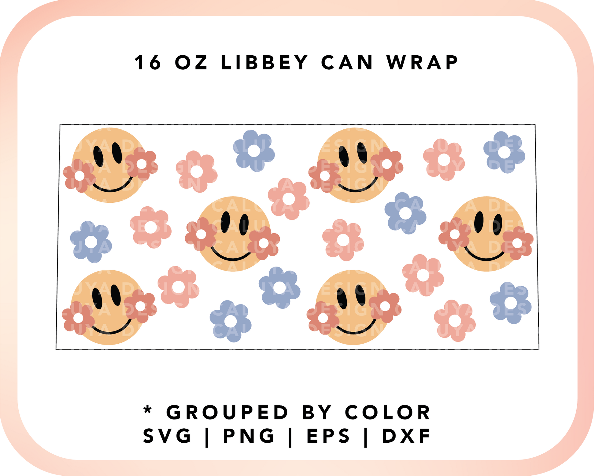 [ SVG Digital File] 16oz Libbey Can Cup Wrap | Daisy Cheek Smiley Face