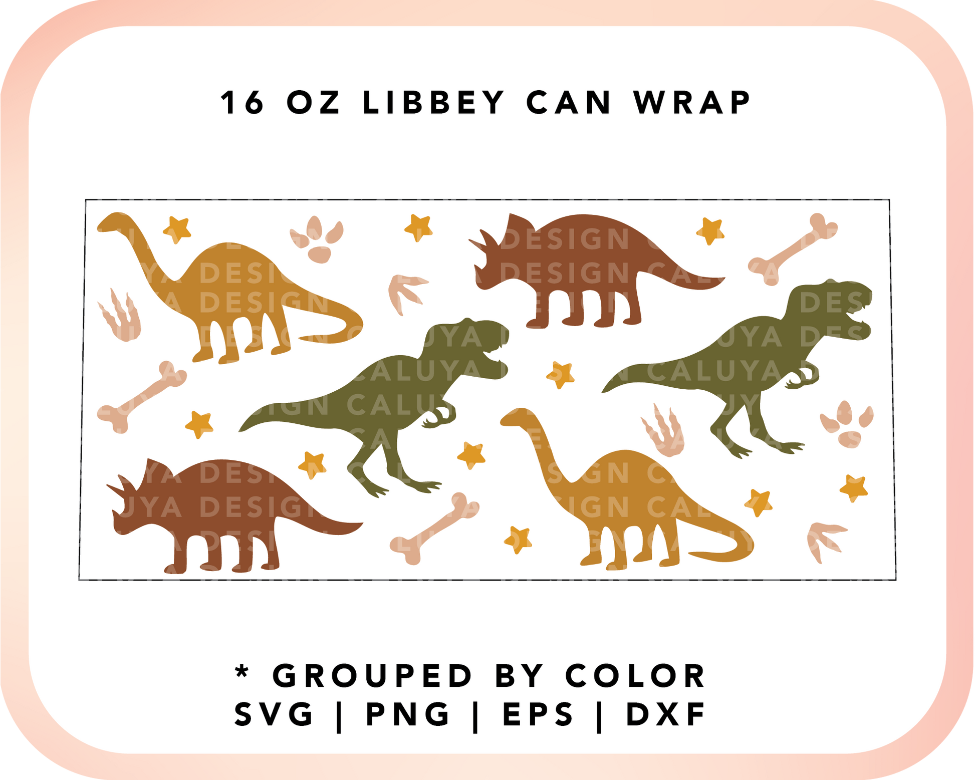 [ SVG Digital File] 16oz Libbey Can Cup Wrap | Dinosaur Wraps