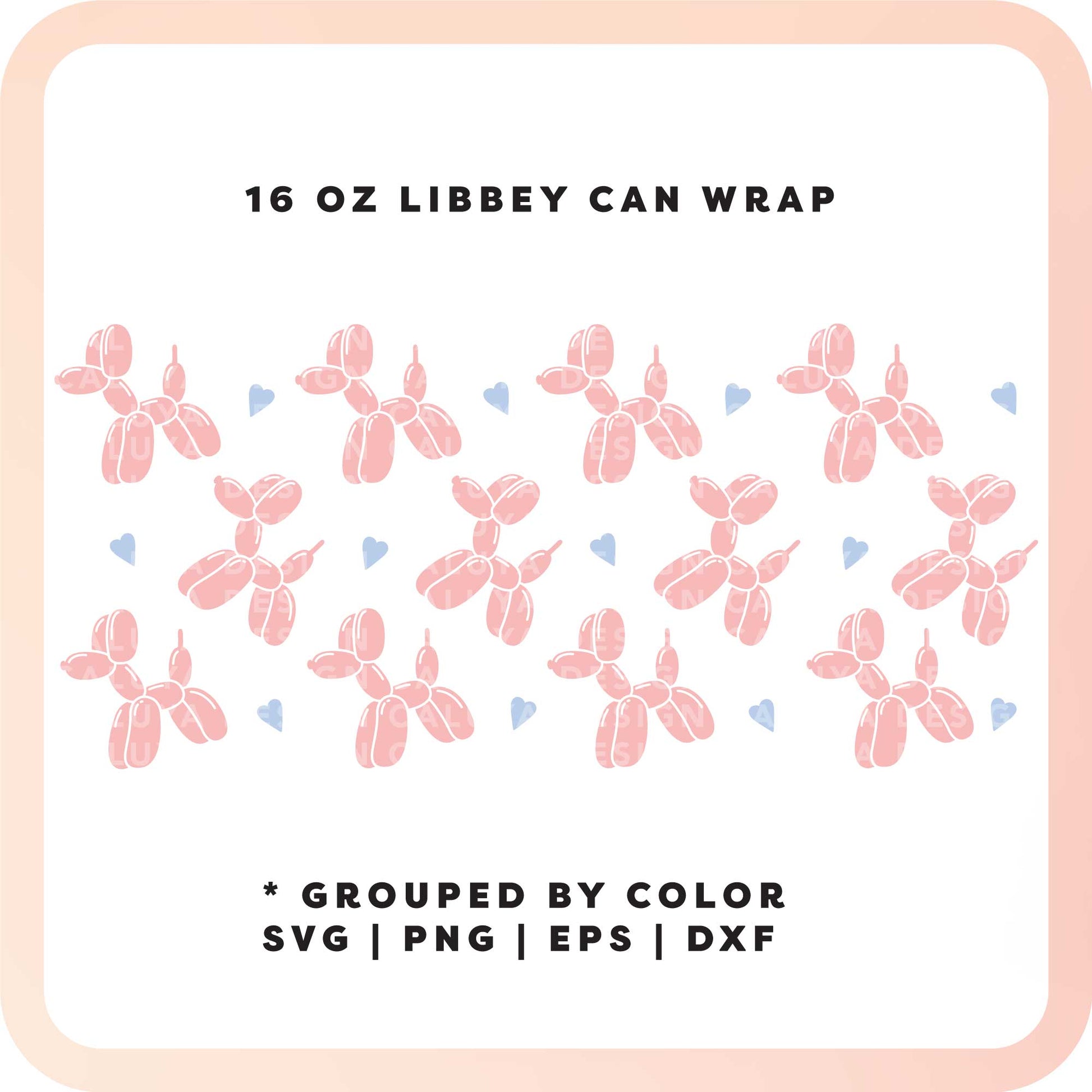 16oz Libbey Can Cup Wrap SVG | Dog Balloon Color SVG