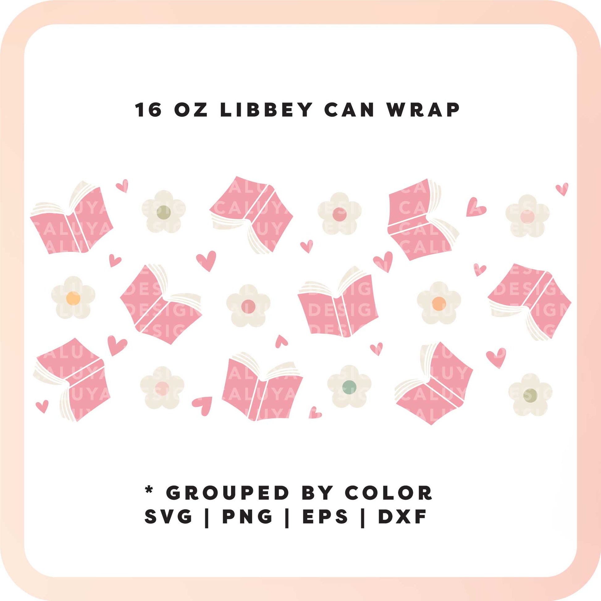 16oz Libbey Can Cup Wrap SVG | Floral Book SVG | Book Lover SVG