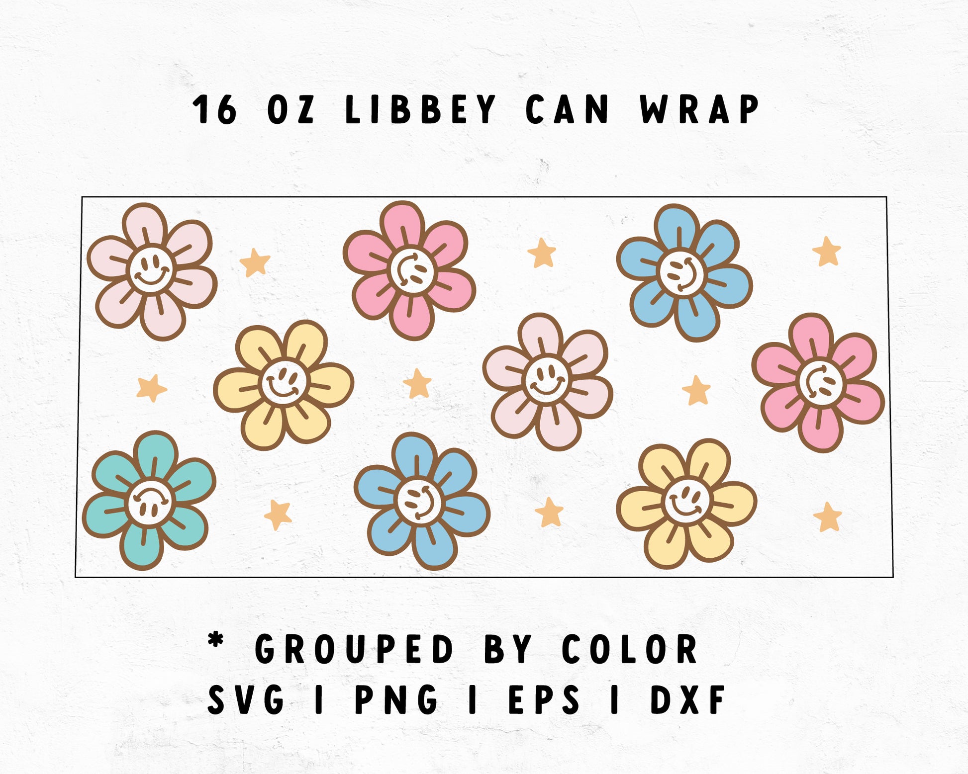 [ SVG Digital File] 16oz Libbey Can Smiley Face Flower Cup Wrap
