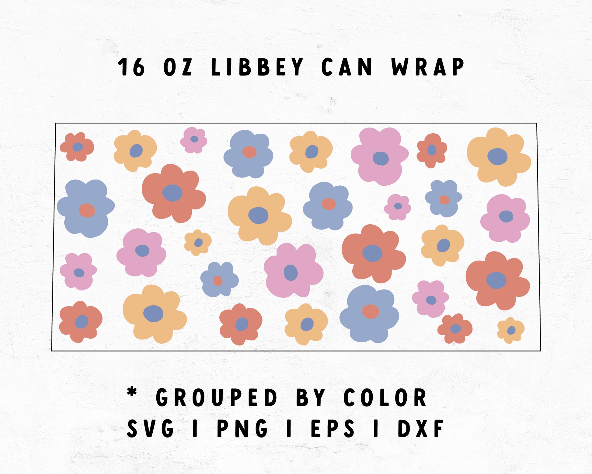 [ SVG Digital File] 16oz Retro Cute Flower Libbey Can Cup Wrap