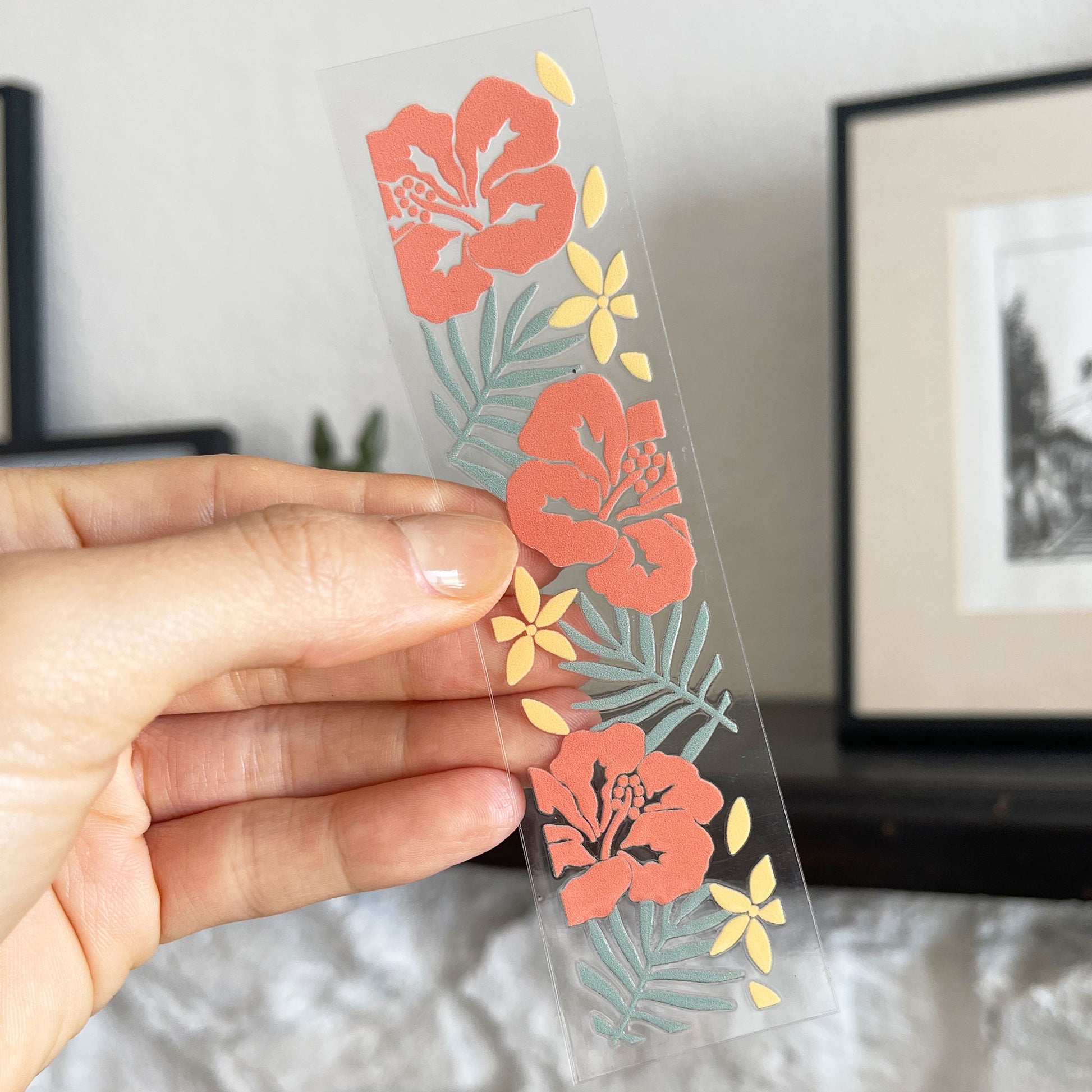 Easy to apply. No more cutting vinyl color by color. Escape into a tropical paradise with our UV DTF bookmark decal, featuring a vibrant hibiscus design to brighten up your reading moments! 📚🌺