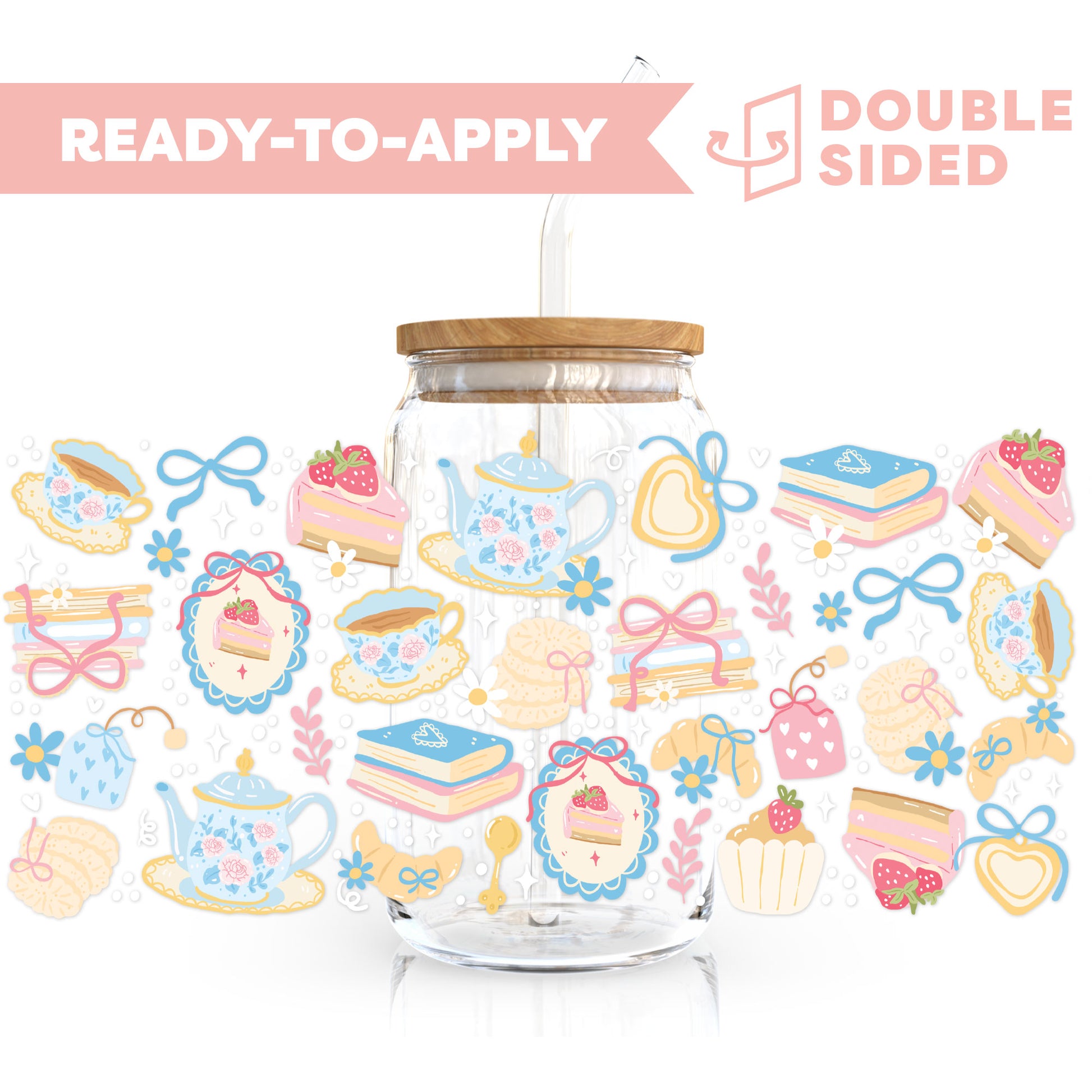 [ Double Sided ] 16oz Cup UV DTF Decal | Blue Coquette Tea Time