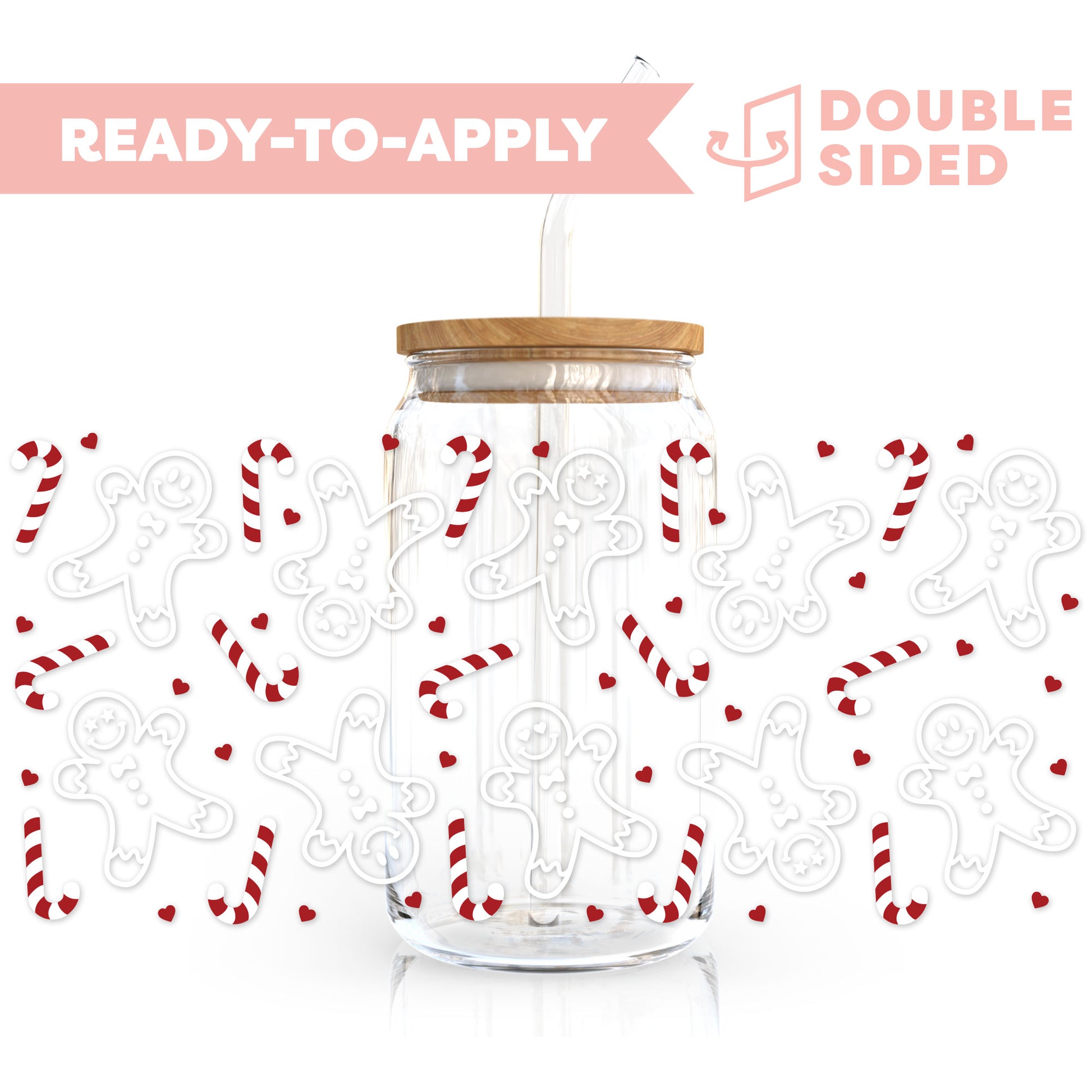 [ Double Sided ] 16oz Christmas Cup Decal | Candy Cane & Gingerbread Man
