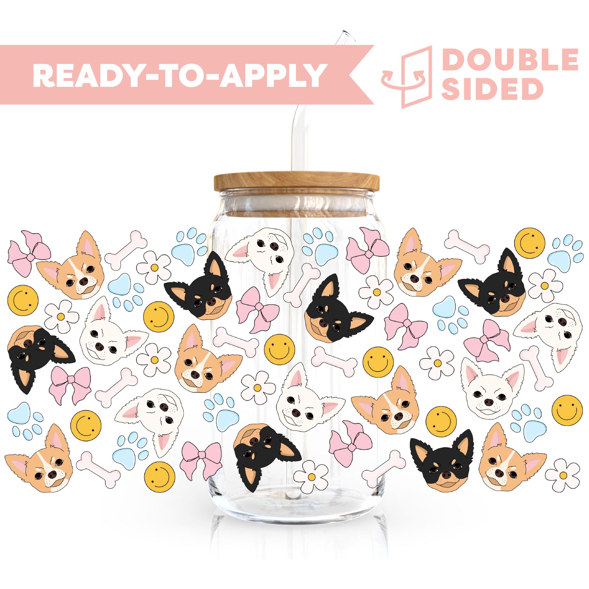 🐾 Sip in style with our [Double Sided] Chihuahua UV DTF Decal—an adorable, quick, and fun way to decorate your 16oz glass cup! 🐕✨