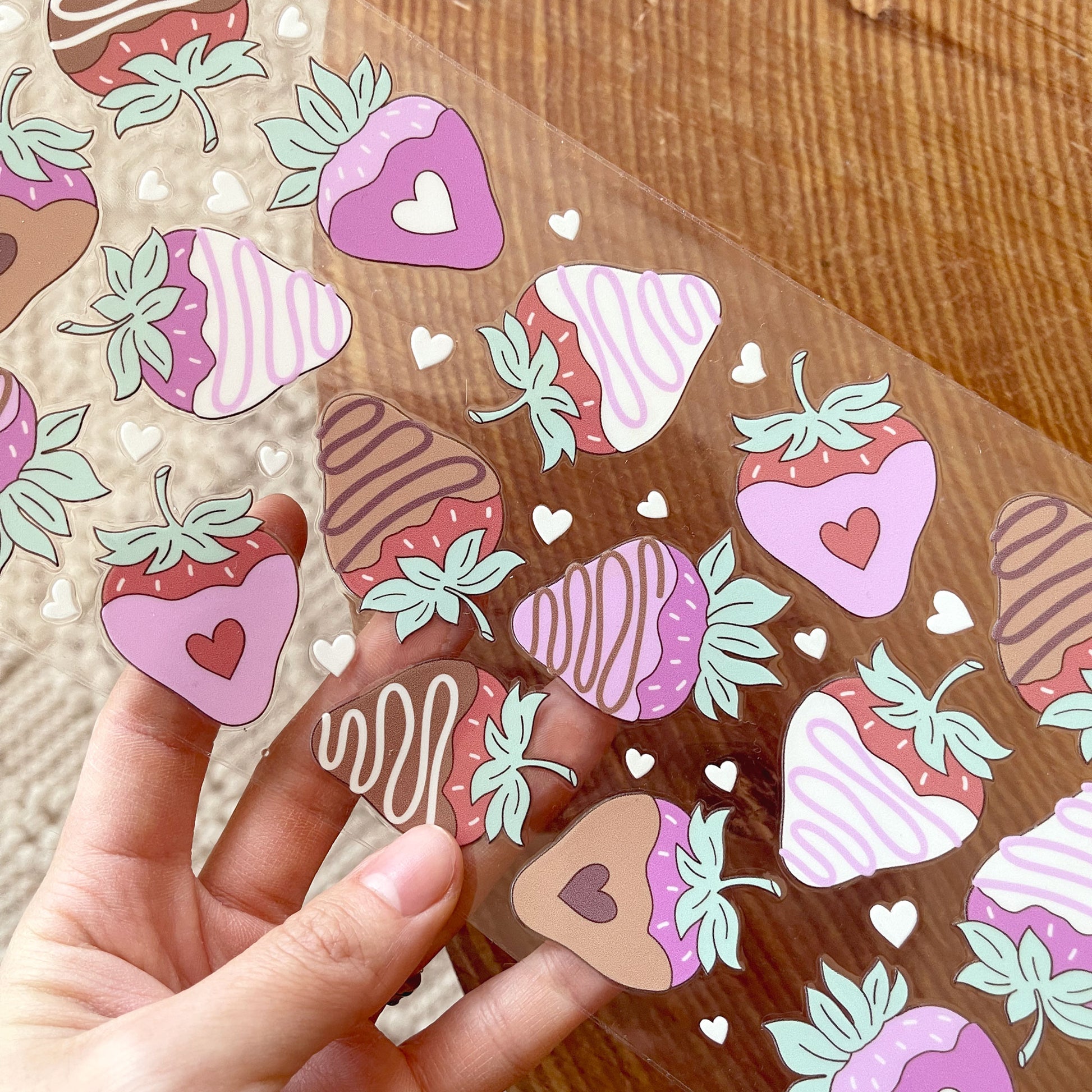 🍓✨ Sweeten your 16oz cup with our [Double Sided] Pink Chocolate Dipped Strawberry UV DTF Decal—perfect for deliciously cute DIY designs! 💖🍫