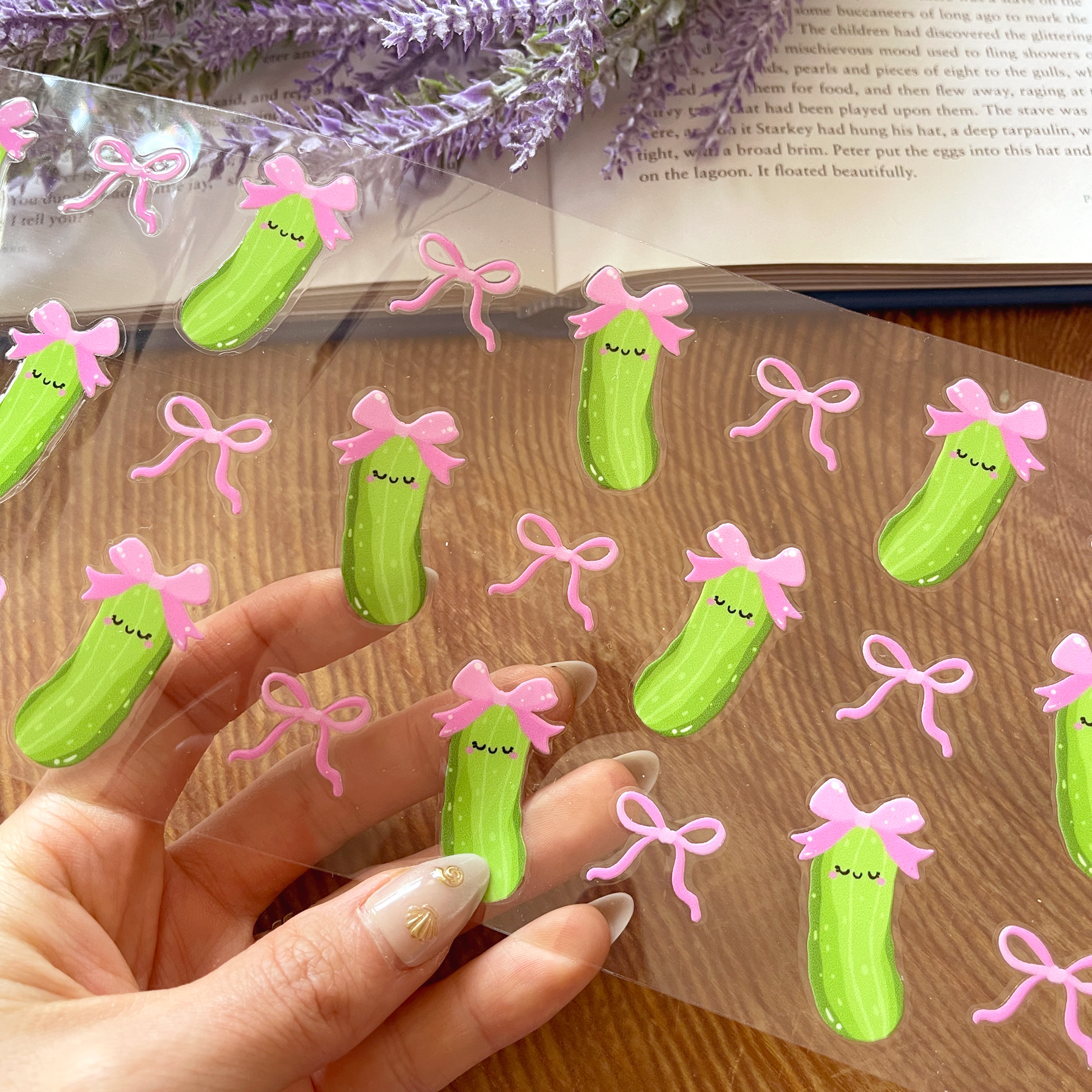 This pickle with a pink bow sticker is freakin' adorable! The colors are so vibrant and it really pops on my cup. The adhesive is super strong, no peeling or lifting at all. I absolutely love it and it makes me smile every time I see it!