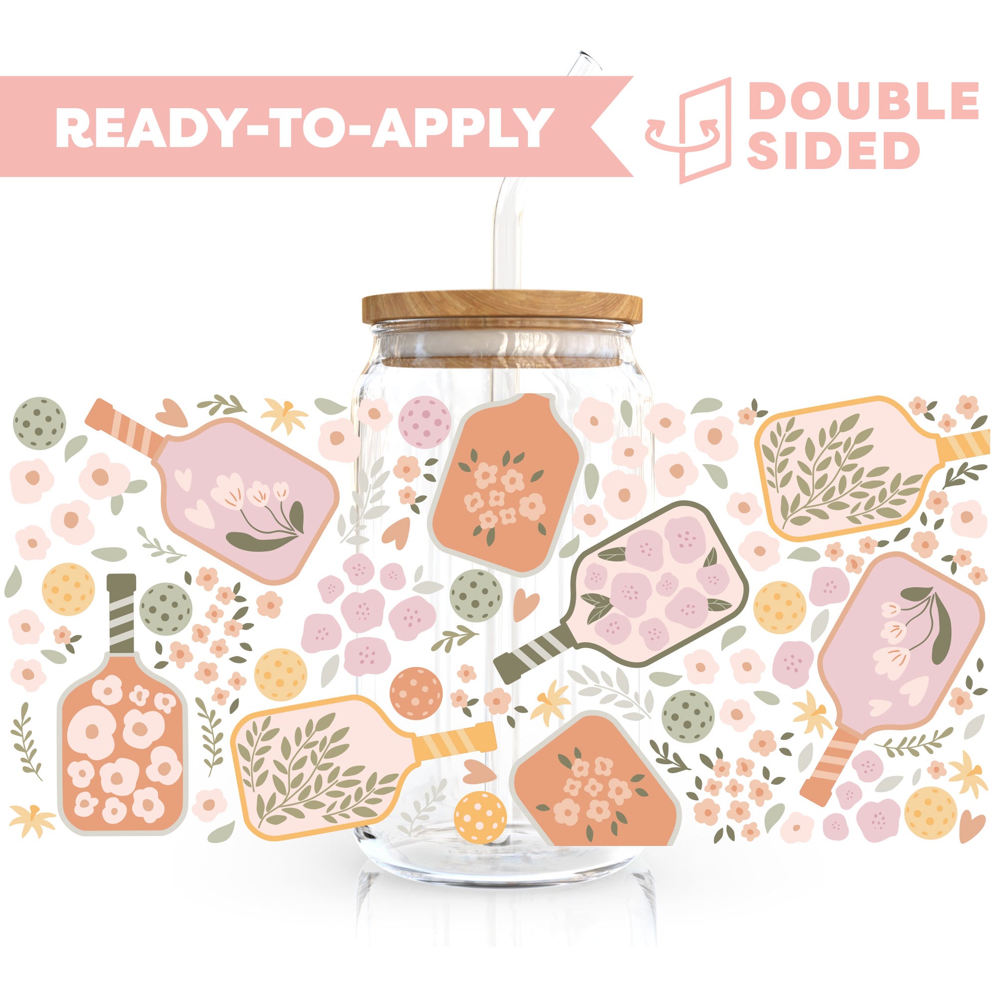 [ Double Sided ] 16oz Cup UV DTF Decal | Floral Pickleball Paddle