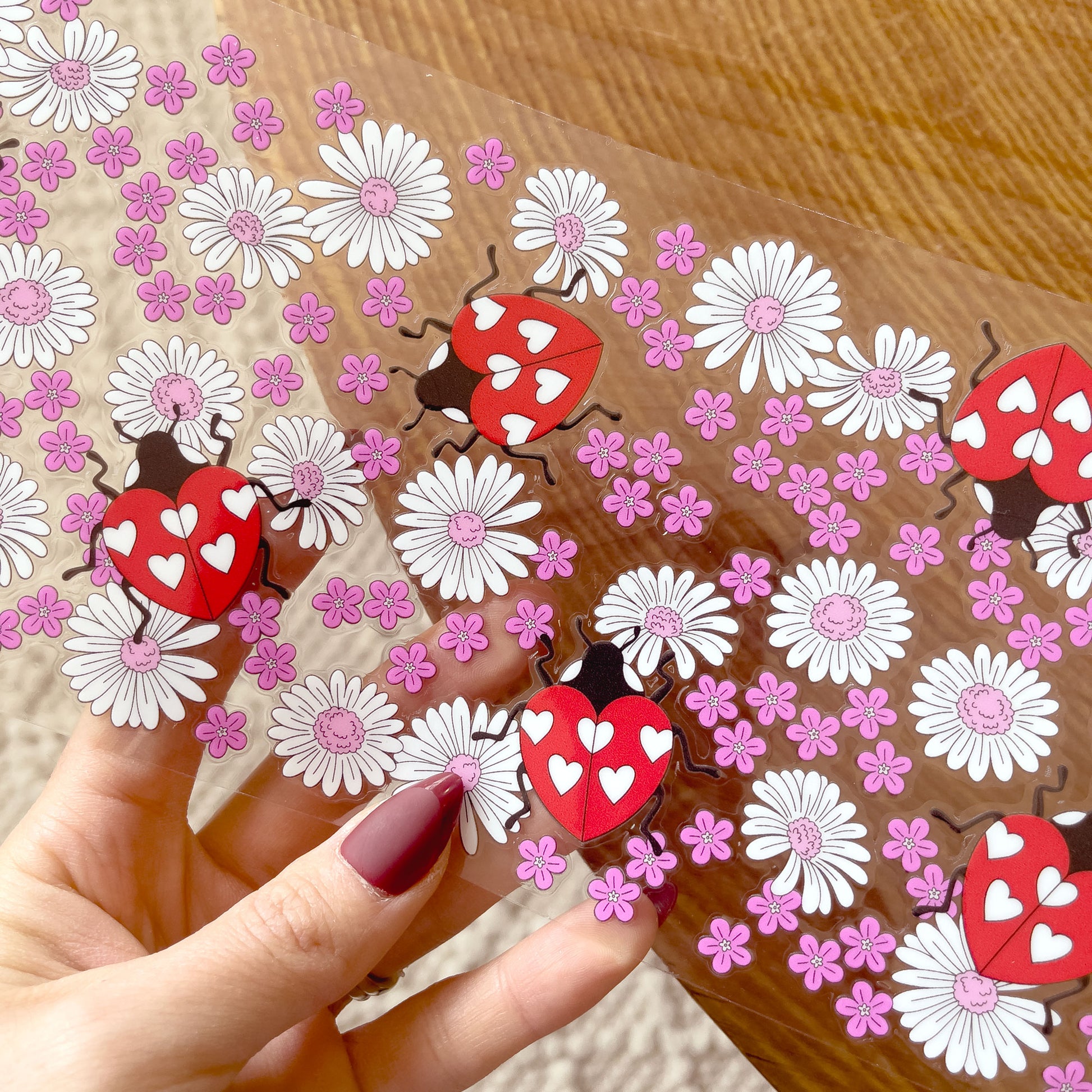 [ Double Sided ] 16oz Cup UV DTF Decal | Heart Lady Bug