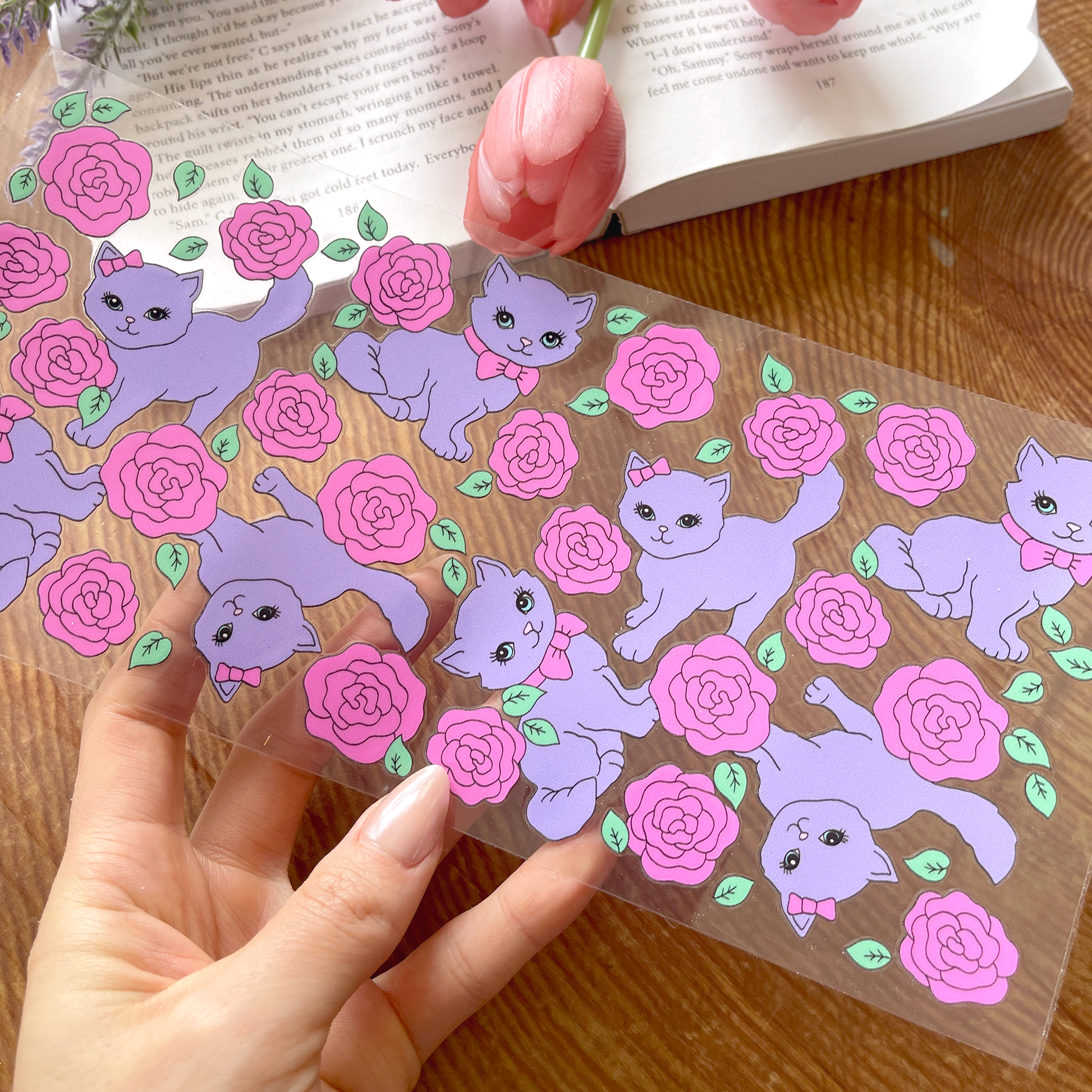 [ Double Sided ] 16oz Cup UV DTF Decal | Kitty & Roses