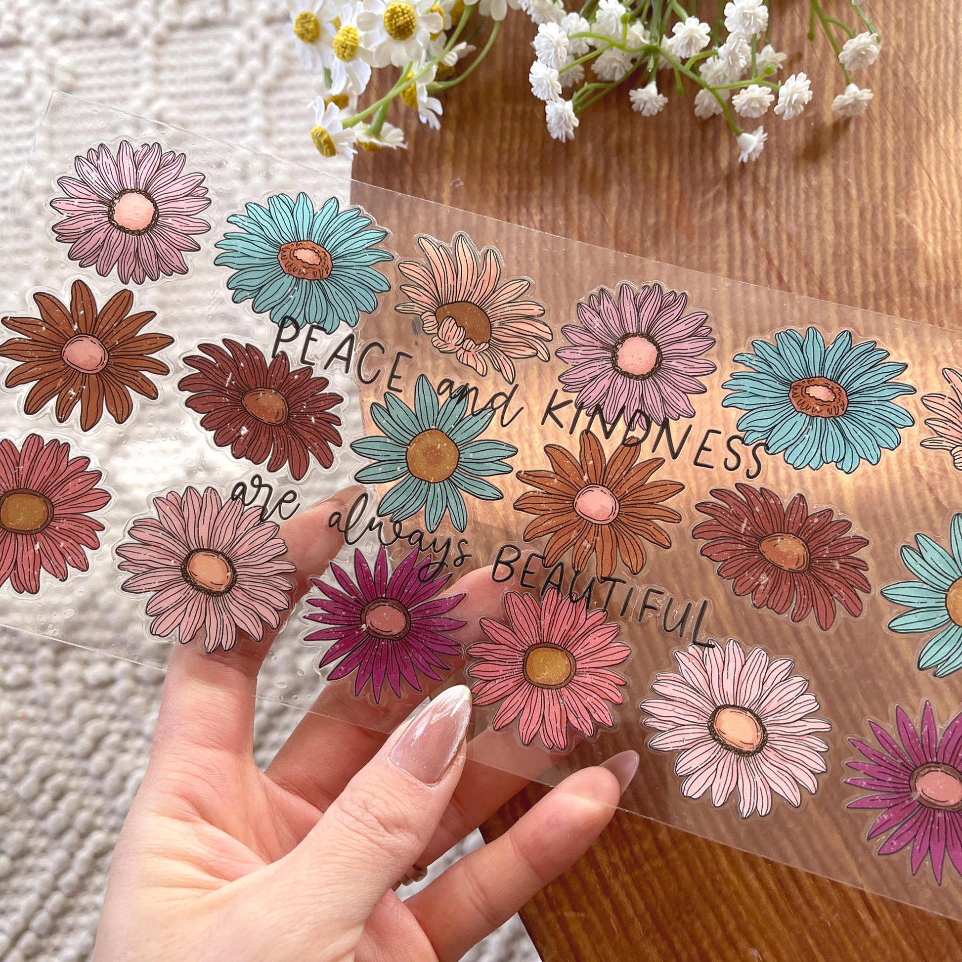 Spread positivity with every sip using our Double-Sided 16oz Cup UV DTF Decal featuring the serene 'Peace and Kindness' design—perfect for adding a calming and heartfelt touch to your DIY cup projects! ☮️✨🥤💖
