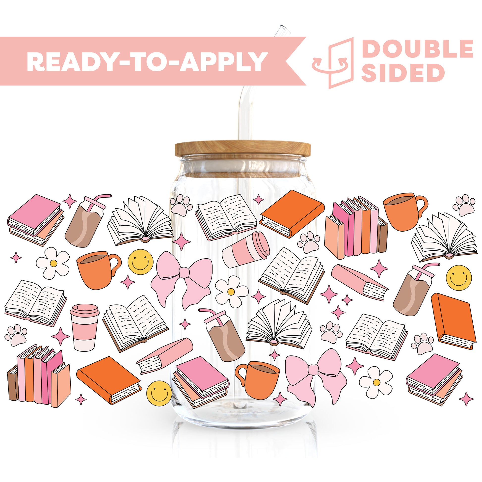 Brighten up your 16oz glass cup with our Pink x Orange Book Lovers UV DTF Decal—because your sips should be as vibrant as your reading adventures! 📚🍊💖