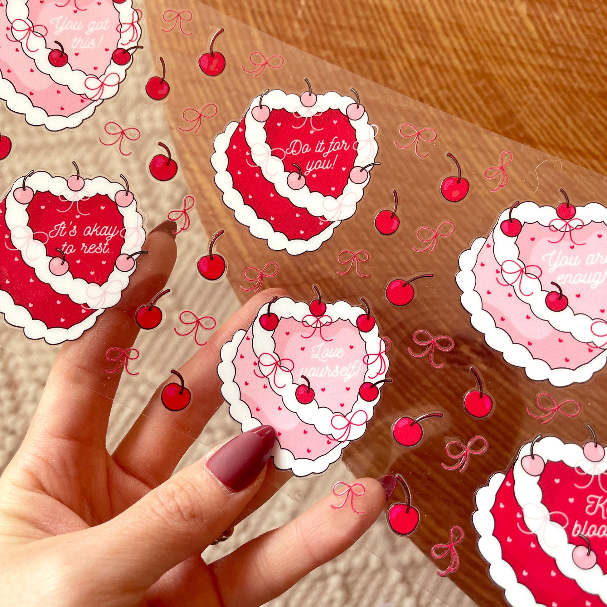 Sweeten your 16oz cup with our [Double Sided] Romantic Cake UV DTF Decal—perfect for a love-filled, stylish touch! 💖✨