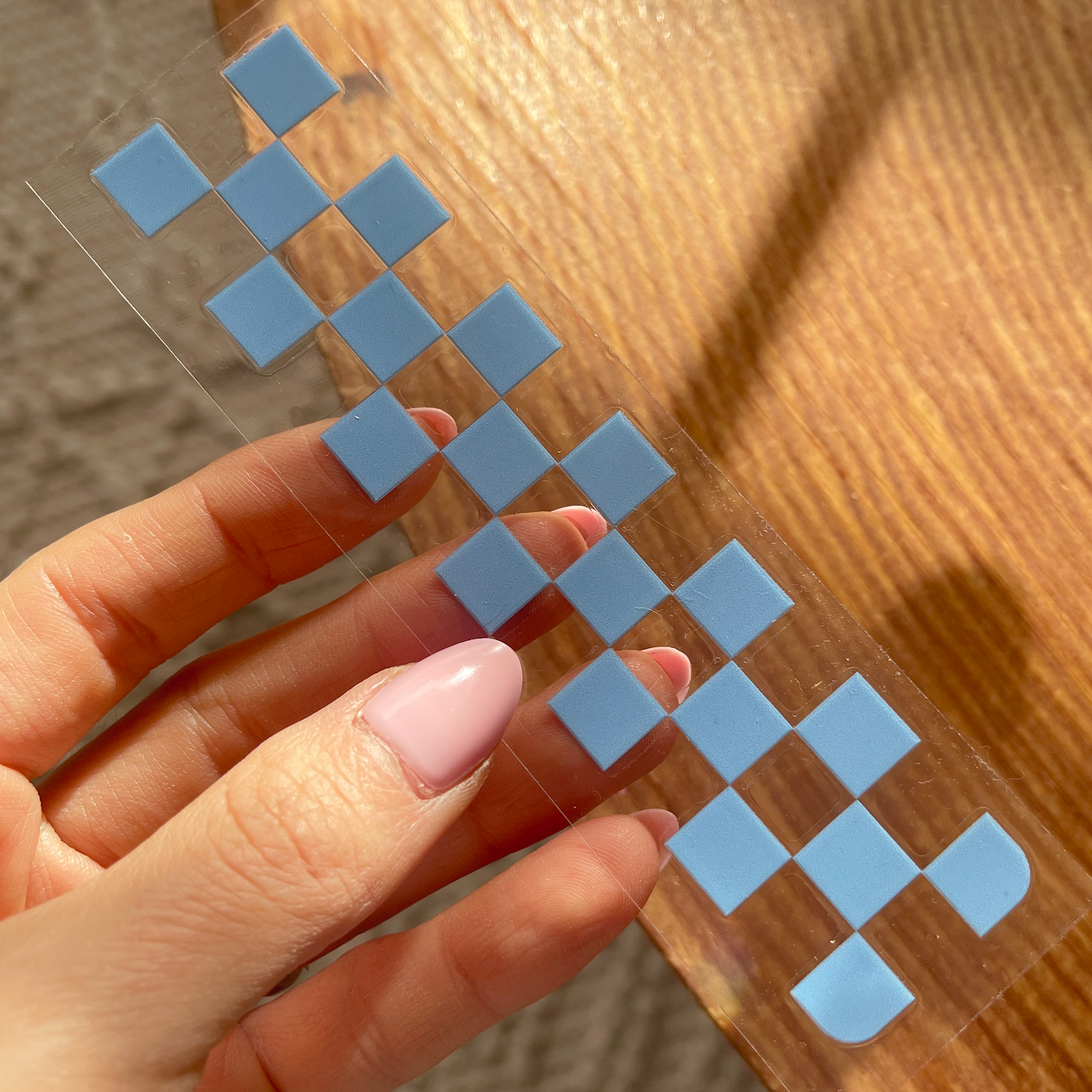 [ Double Sided ] Bookmark UV DTF Decal | Aqua Checkered