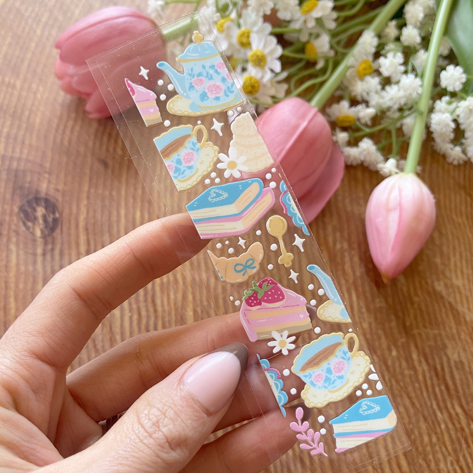 [ Double Sided ] Bookmark UV DTF Decal | Blue Coquette Tea Time