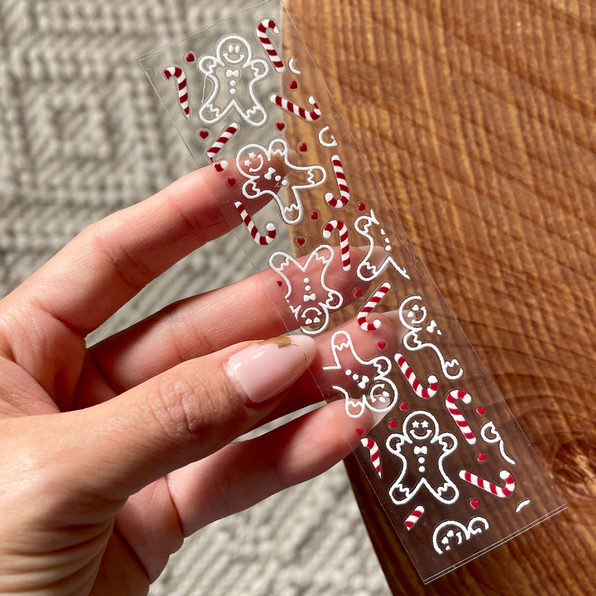 🍬🎄 Sweeten up your DIY bookmarks with our [Double Sided] Bookmark UV DTF Decal | Candy Cane & Gingerbread Man, perfect for quick and easy crafting!