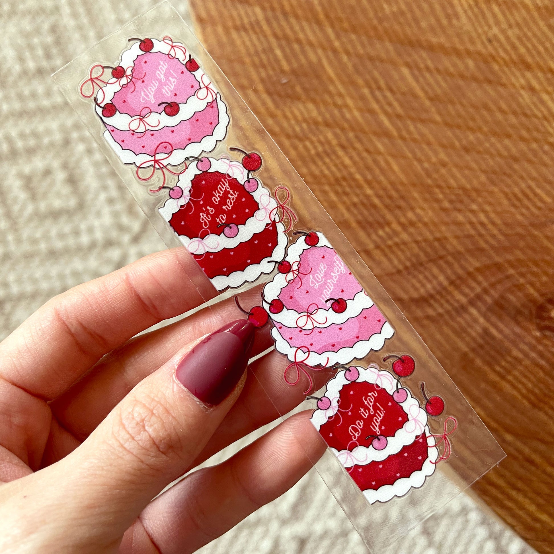 [ Double Sided ] Bookmark UV DTF Decal | Romantic Cake
