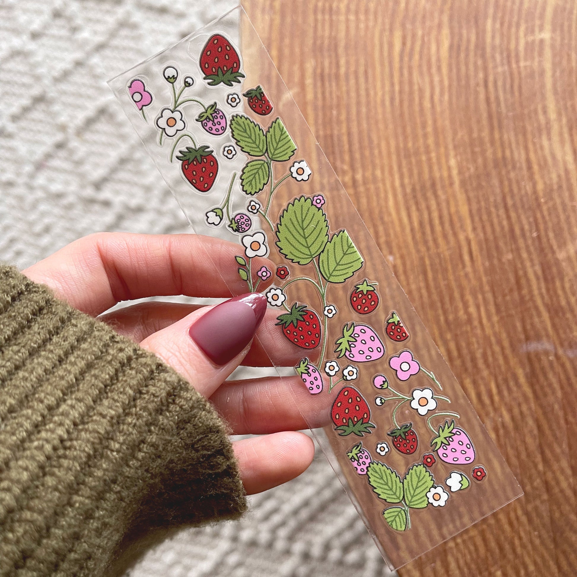 📖🍓 Add a burst of freshness to your DIY bookmark project with our [Double Sided] Strawberry Field UV DTF Decal—perfect for a sweet, nature-inspired design! 🌿✨