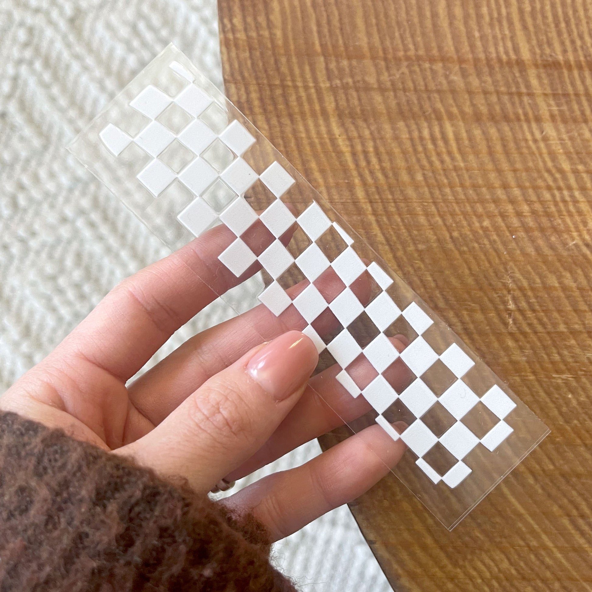 📚✨ Elevate your DIY bookmarks with this [Double-Sided] Wavy Beige Checkered UV DTF Decal—perfect for adding a touch of style to your reading adventures! 💖📖