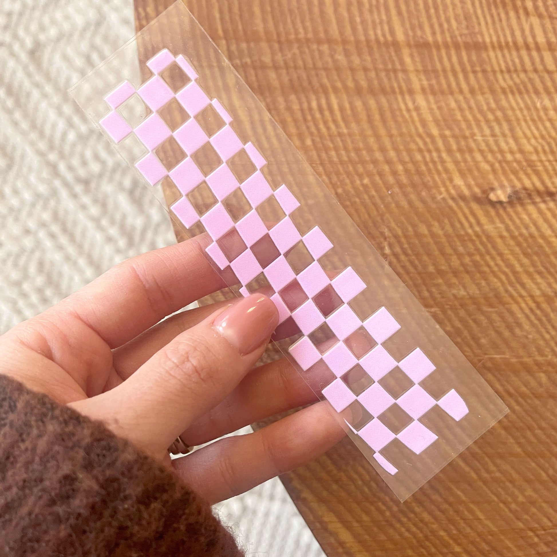📚💖 Add a sweet, feminine touch to your DIY bookmarks with this [Double-Sided] Wavy Blush Checkered UV DTF Decal—perfect for elevating your reading experience! ✨🌸