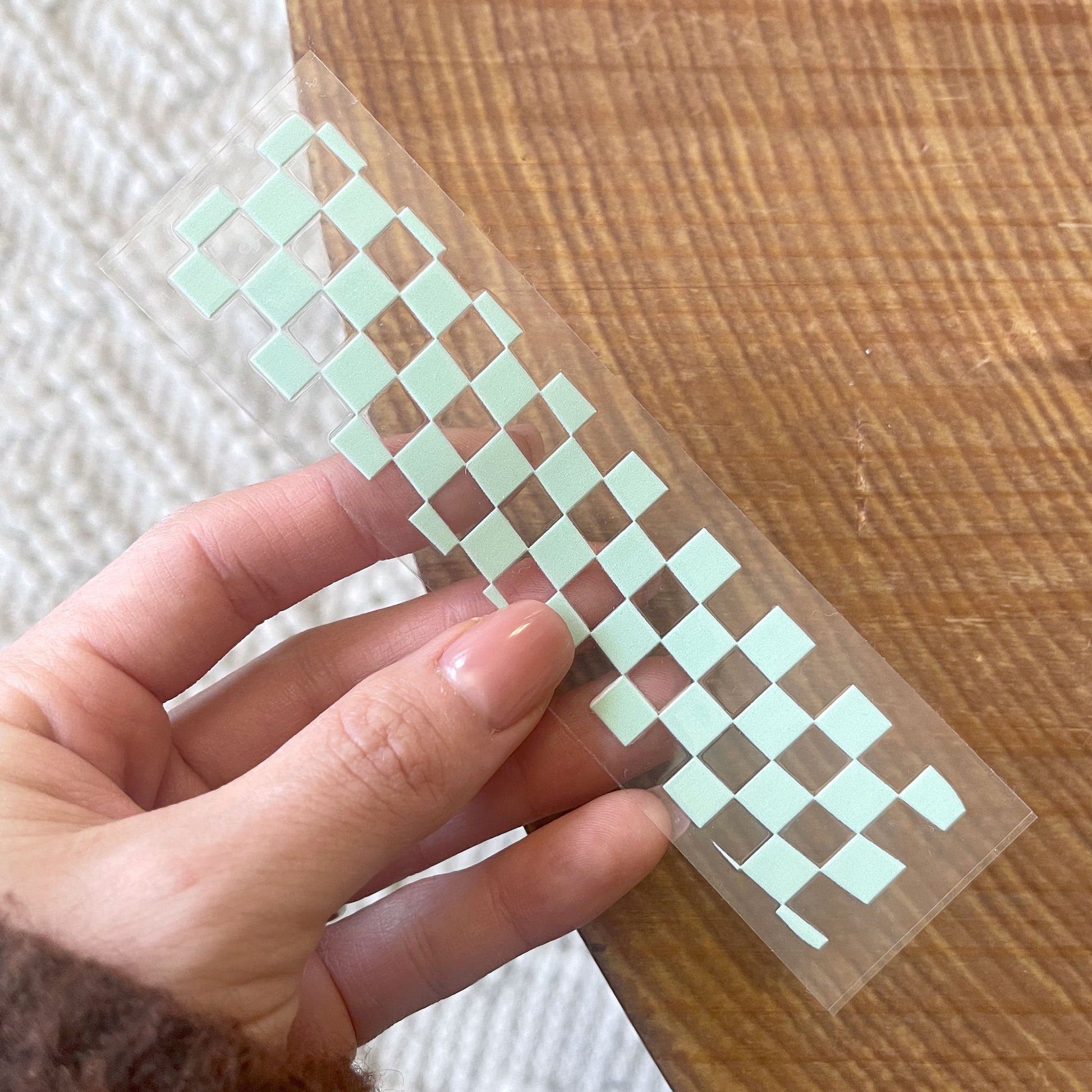[ Double Sided ] Bookmark UV DTF Decal | Wavy Matcha Checkered