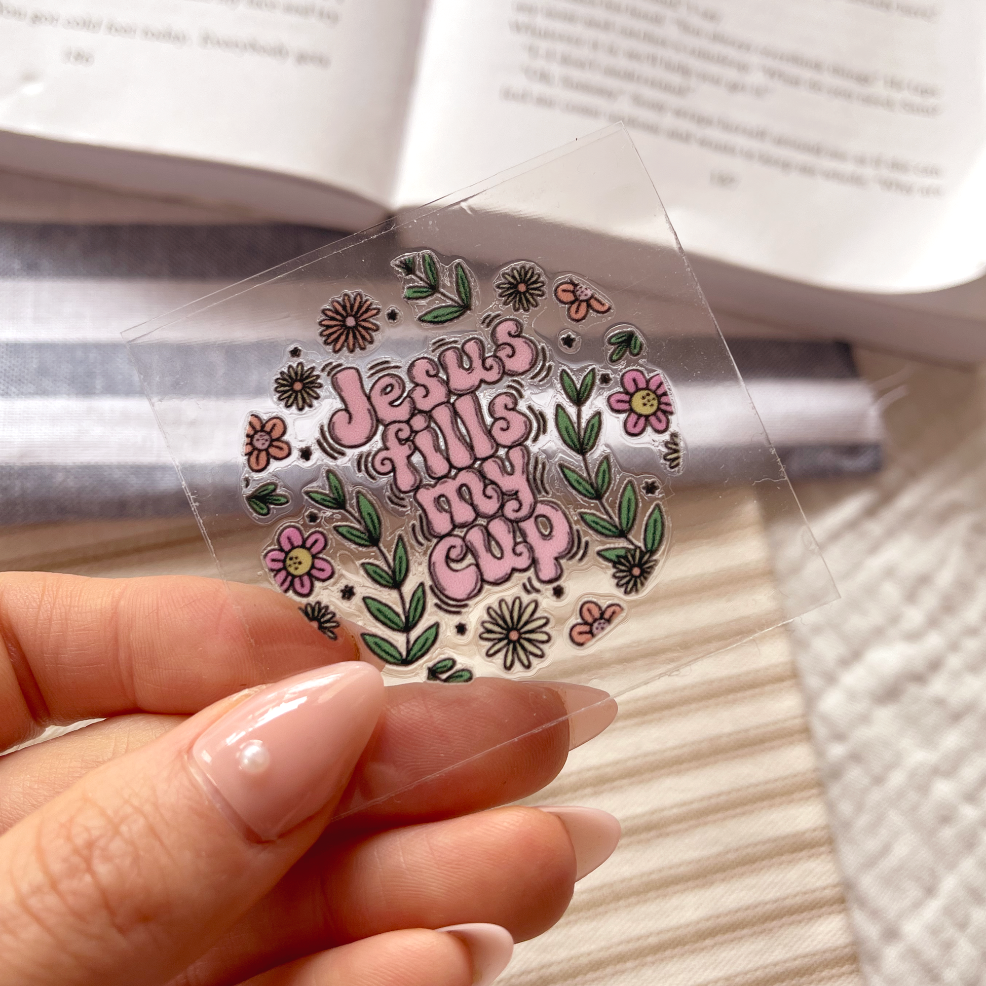 [ Double Sided ] Circle UV DTF Decal | Jesus Fills My Cup