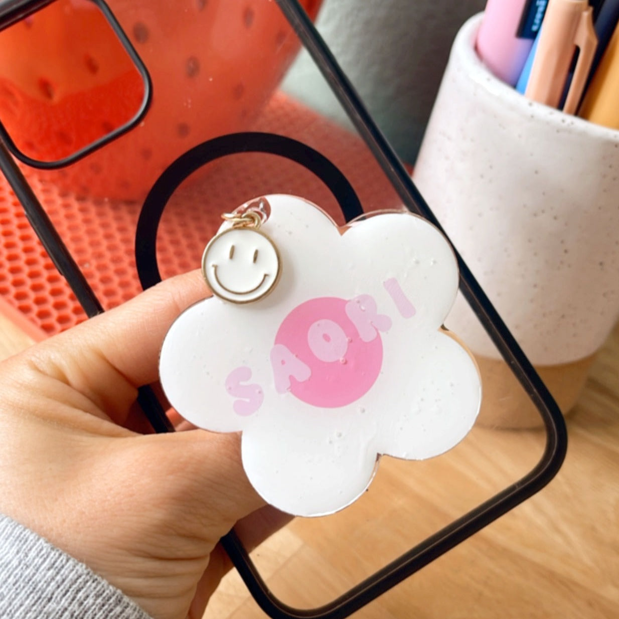You will use these connected parts to attach acrylic to keychain